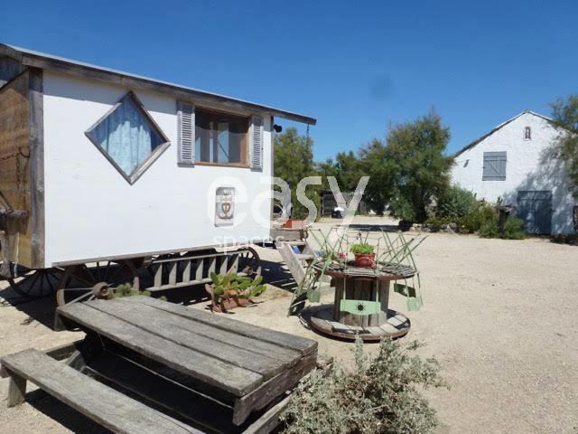Très joli mas blanc typiquement Camarguais entouré de réserves naturelles, à louer pour un shooting photo en Camargue en région Provence Alpes Côte d'Azur.