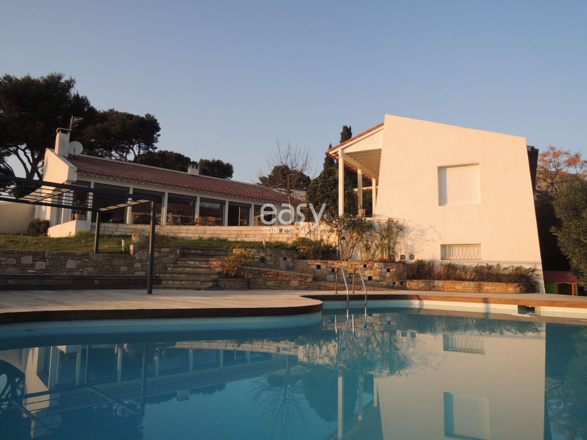 Maison moderne avec piscine à louer près de Marseille, possédant une magnifique vue mer, montagne, et collines, et de nombreuses terrasses. Villa localisée dans le sud de la France, dans les Bouches du Rhône en région PACA.