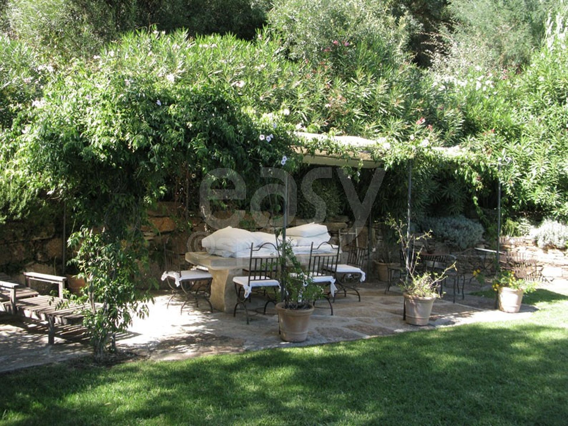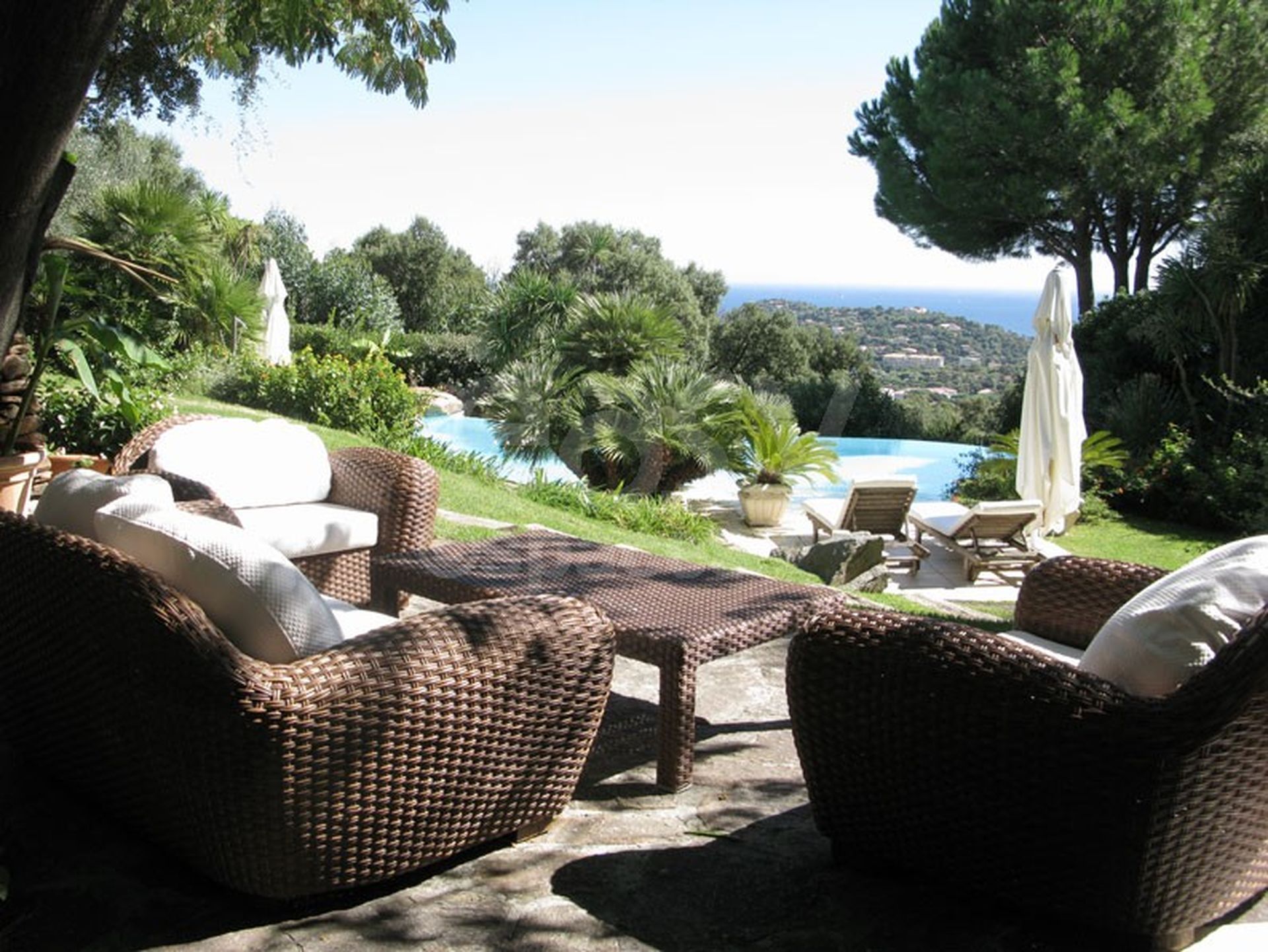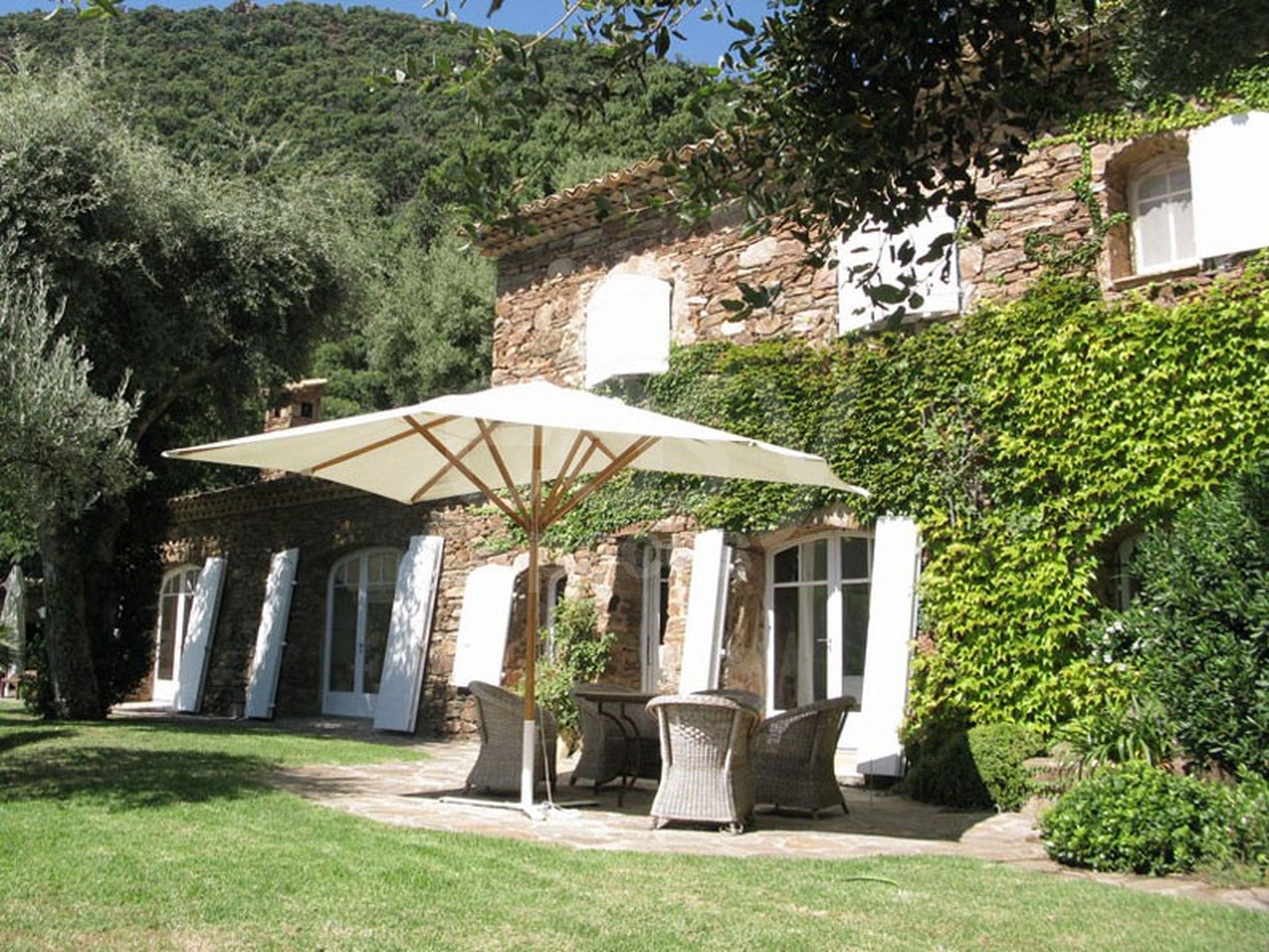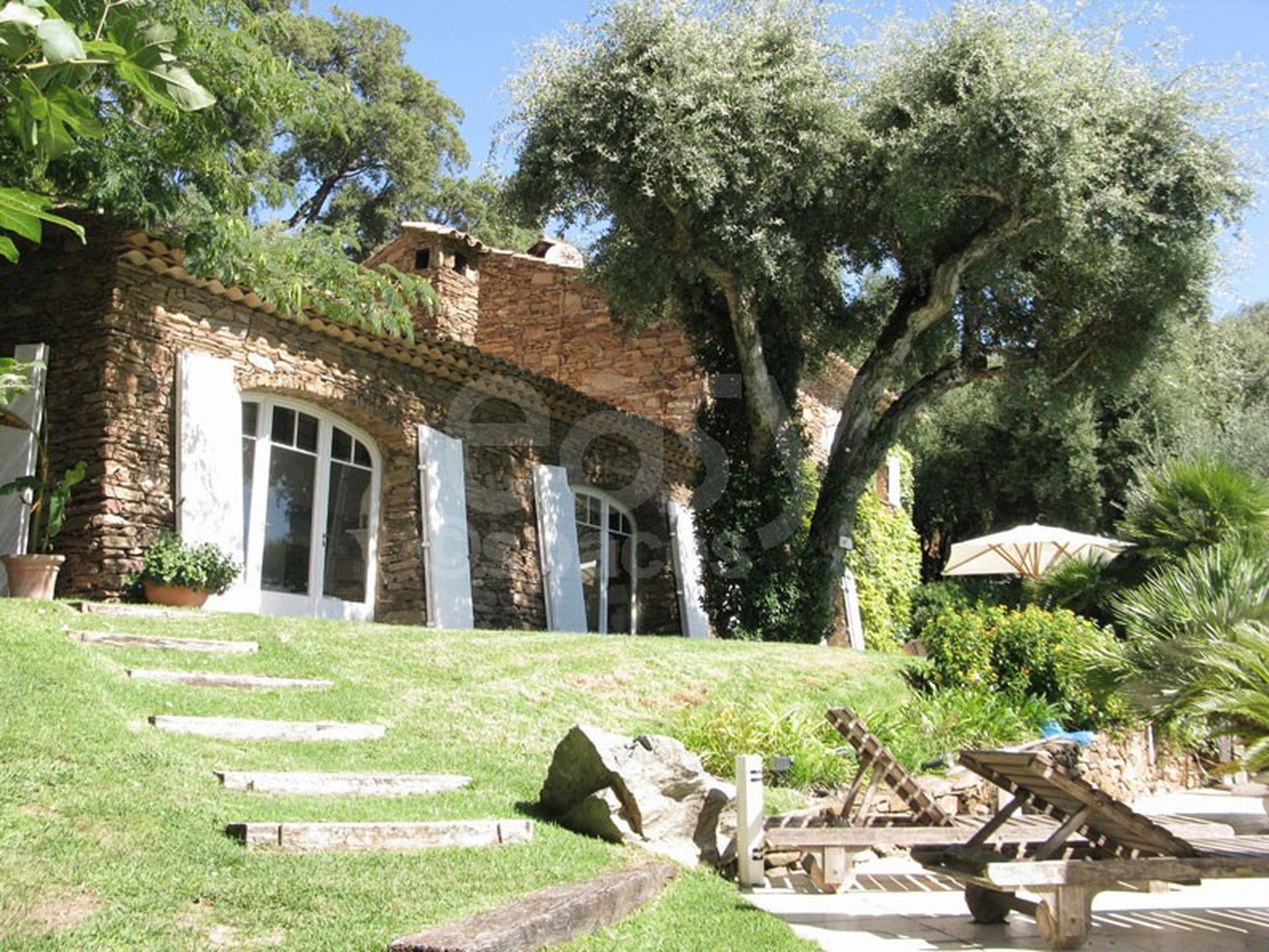 Une belle maison de prestige avec piscine et vue mer, près de Saint-Tropez dans le Var. Riche d ' extérieurs volumineux et variés, cette villa est ornée un parc très bien entretenu, et possède un charme fou avec ces vieilles pierres, et ses recoins dans la verdure. Un très beau lieu de tournage en location aussi à la journée pour les shootings photos et les événements dans le Var, en région Provence Alpes Côte d 'Azur. Intérieur cosy, salle à manger d ' extérieur, tonnelle, piscine à débordement... Un décor de cinéma disposant aussi d ' un espace de stockage pour du matériel, ou des meubles de jardins.