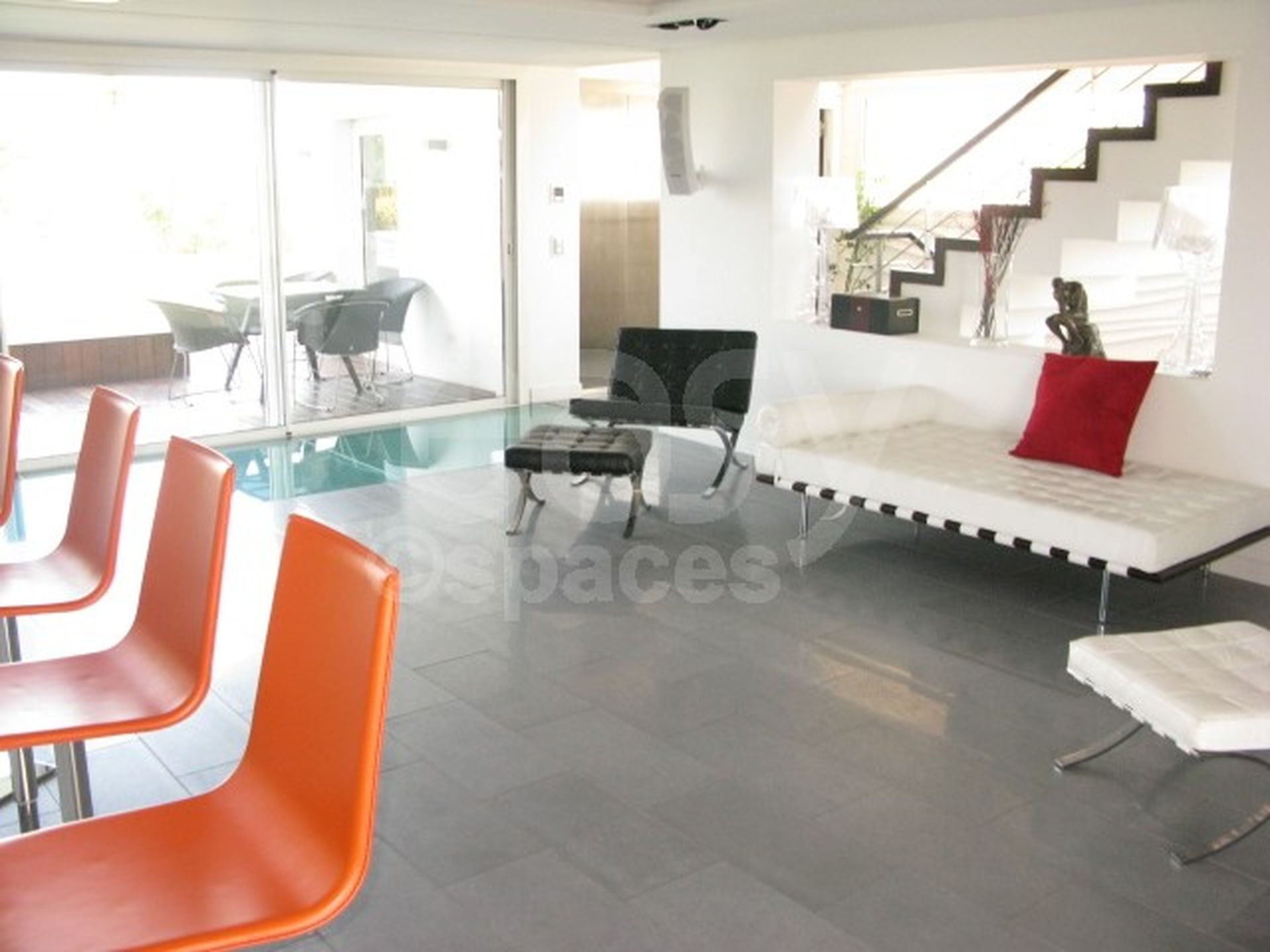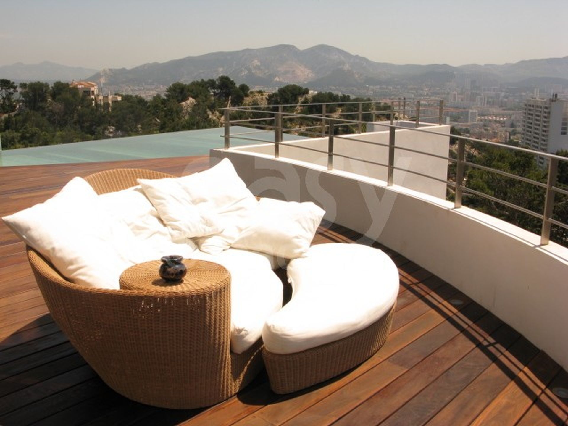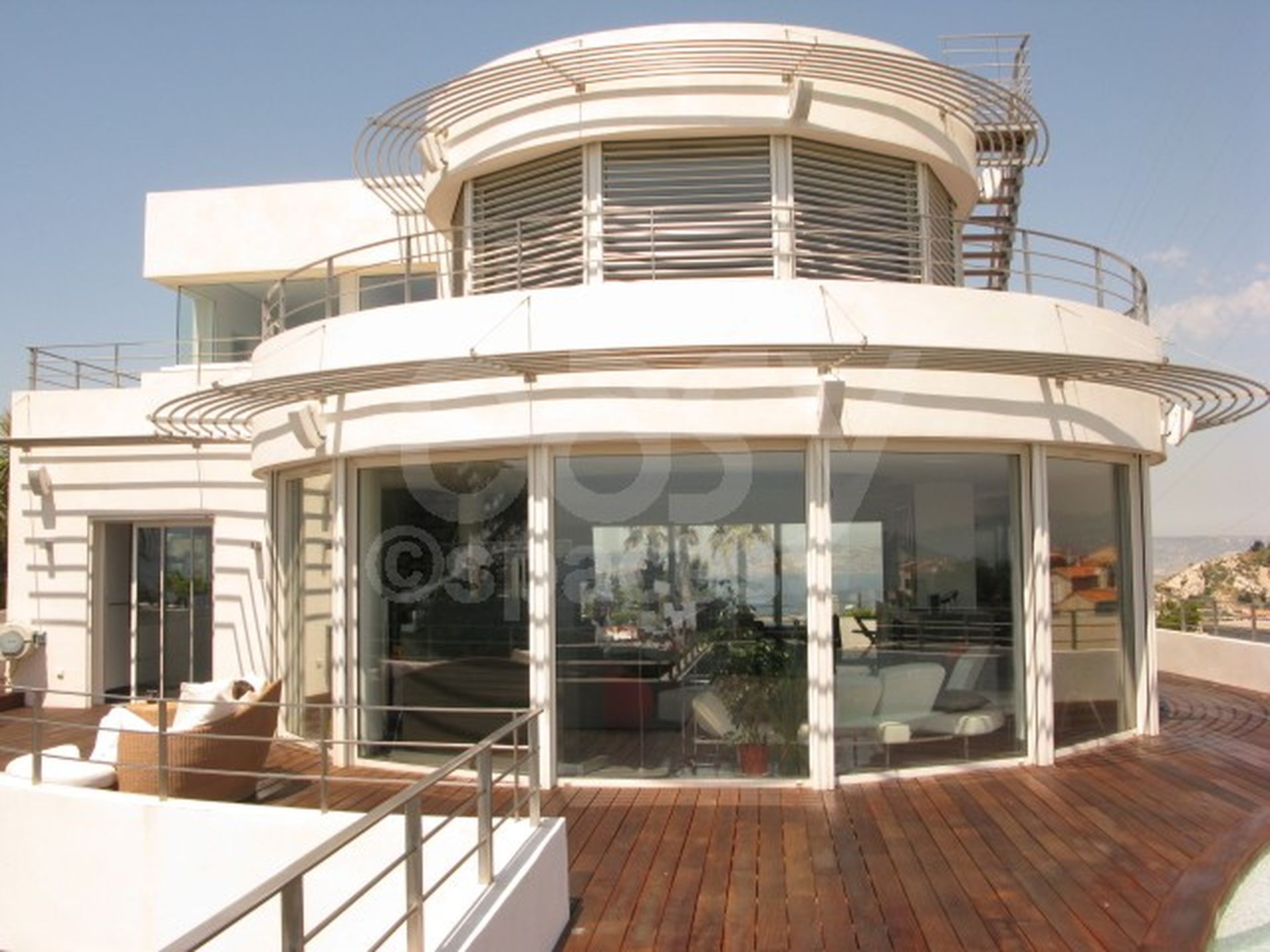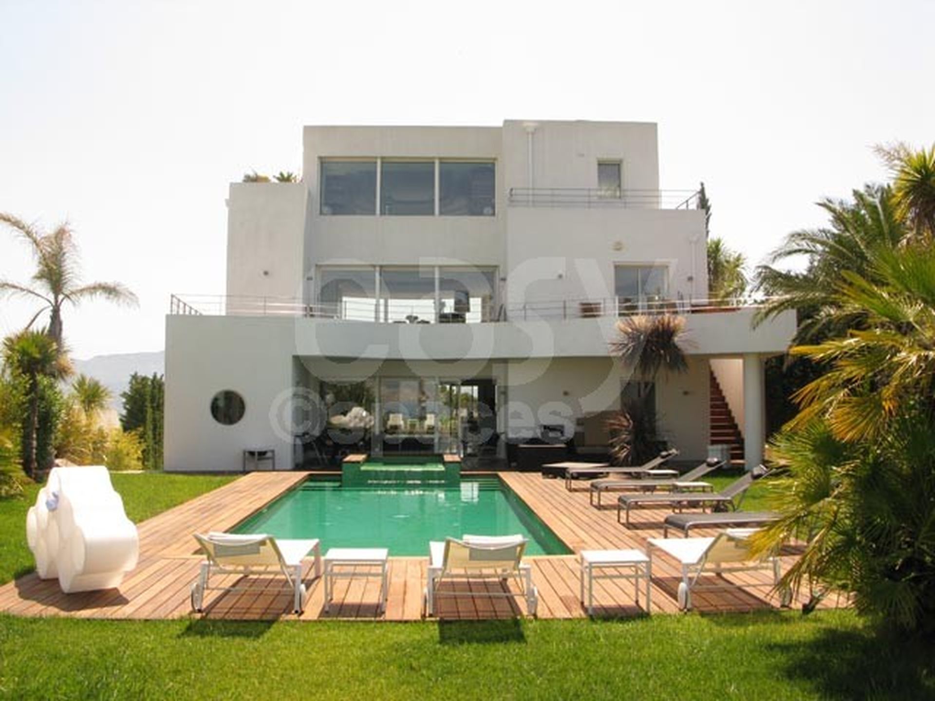 Lieu composé de plusieurs étages avec ascenseur, terrasses, une piscine extérieure à l ' étage, doté d ' une grande surface habitable avec de nombreuses chambres. L ' intérieur est très contemporain, avec des meubles de design, et convient pour les tournages, long-métrages, ou les prises de vues photos. Un décor avec un côté très "Miami", idéal pour des productions photographiques de meubles de jardin dans le sud de la France.