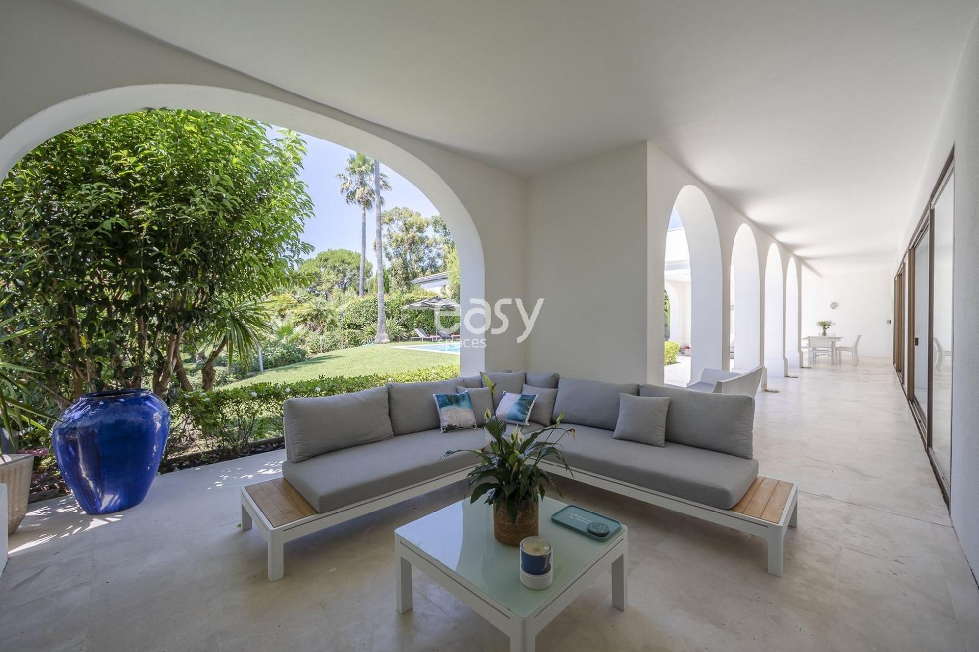 L’extérieur ne laisse pas indifférent : une piscine turquoise bordée de palmiers, un jardin soigneusement entretenu, des coins lounge ombragés sous les arches, parfaits pour une ambiance méditerranéenne, entre luxe discret et atmosphère paisible.