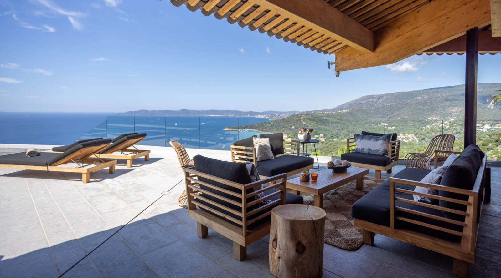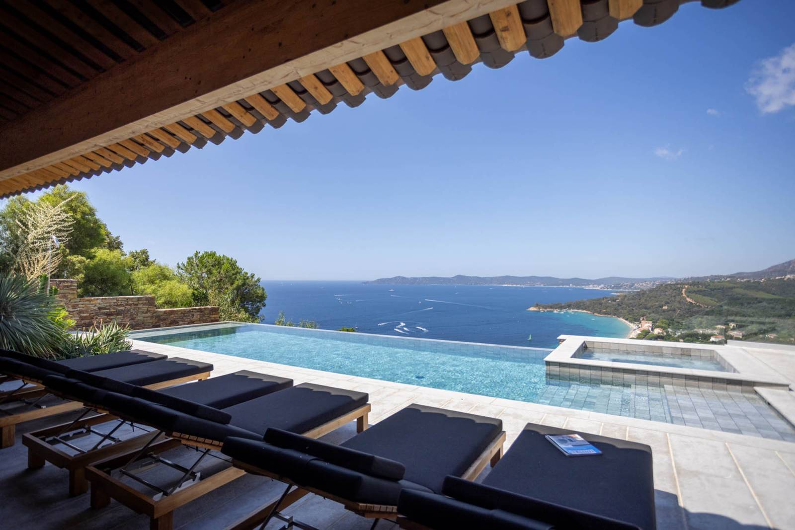 L’un des atouts majeurs de cette propriété est sans aucun doute sa terrasse suspendue au-dessus de la mer, un véritable balcon sur la Méditerranée, avec piscine à débordement et jacuzzi.