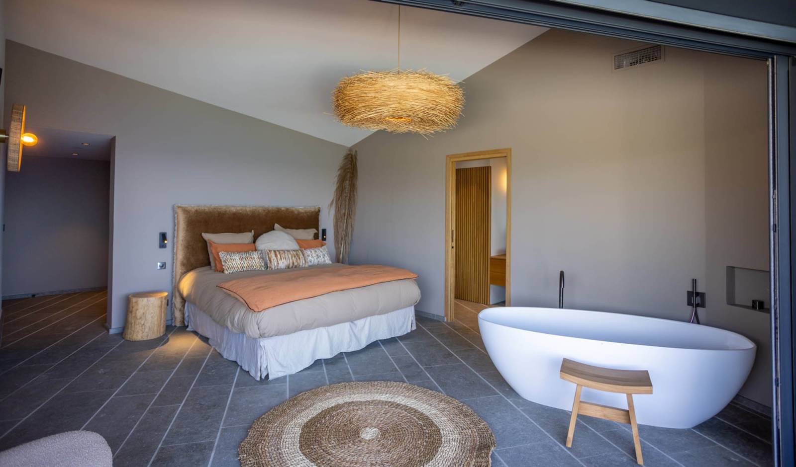 Les grandes chambres, les salles de bain spacieuses et l’ambiance générale du lieu contemporaine, raffinée et apaisante font de cette villa un décor très photogénique.