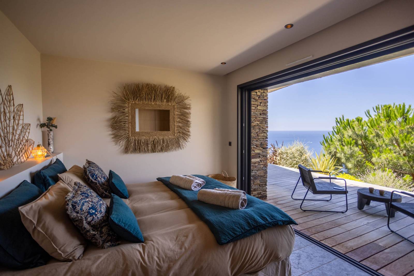 Son architecture s’intègre harmonieusement dans le paysage, avec des volumes ouverts, une décoration élégante aux inspirations ethniques, et une vue panoramique à couper le souffle.