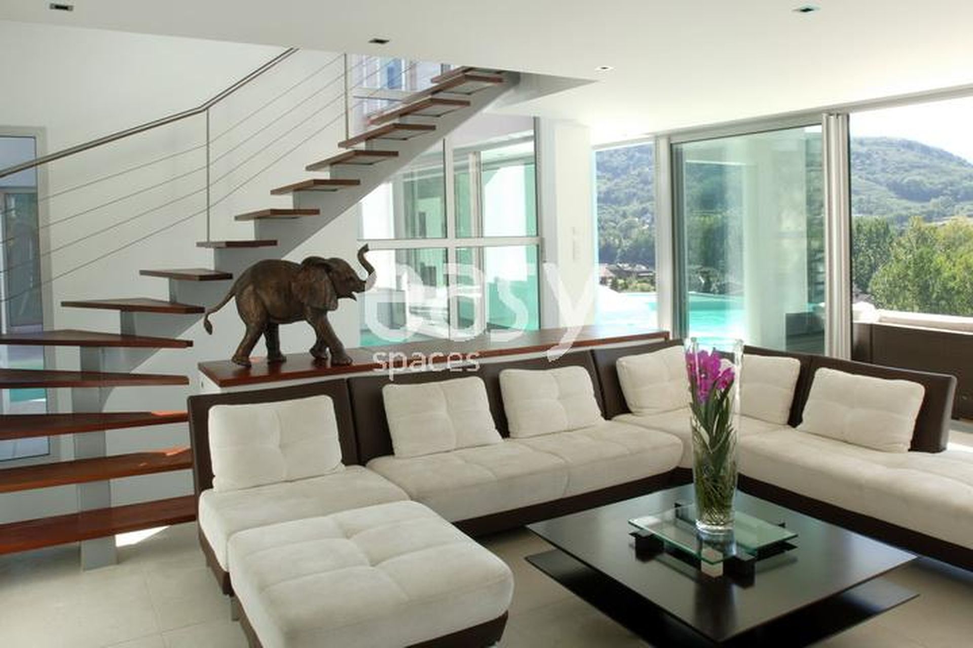 Une architecture signature : lignes pures, façades géométriques, jeux de transparence avec de vastes baies vitrées, hauteurs sous plafond impressionnantes