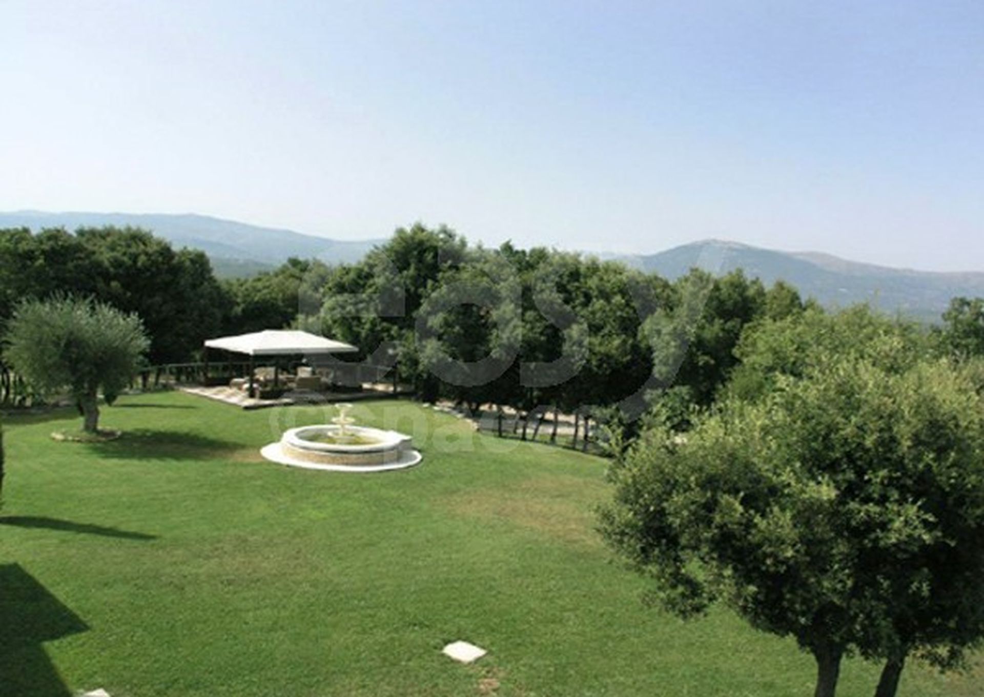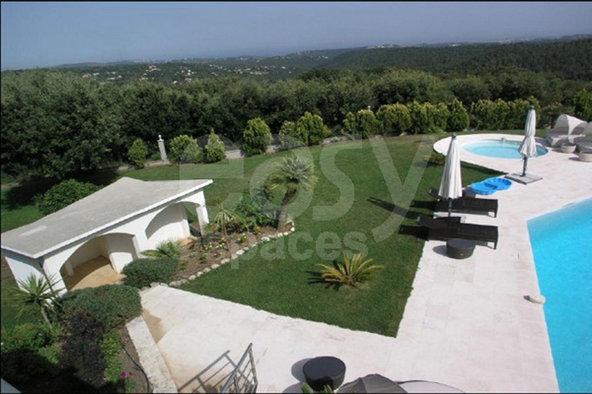 15 000 m2 de jardin semé d'oliviers et de pins, avec piscine de 13x6 m, terrain de tennis, pool house et héliport.