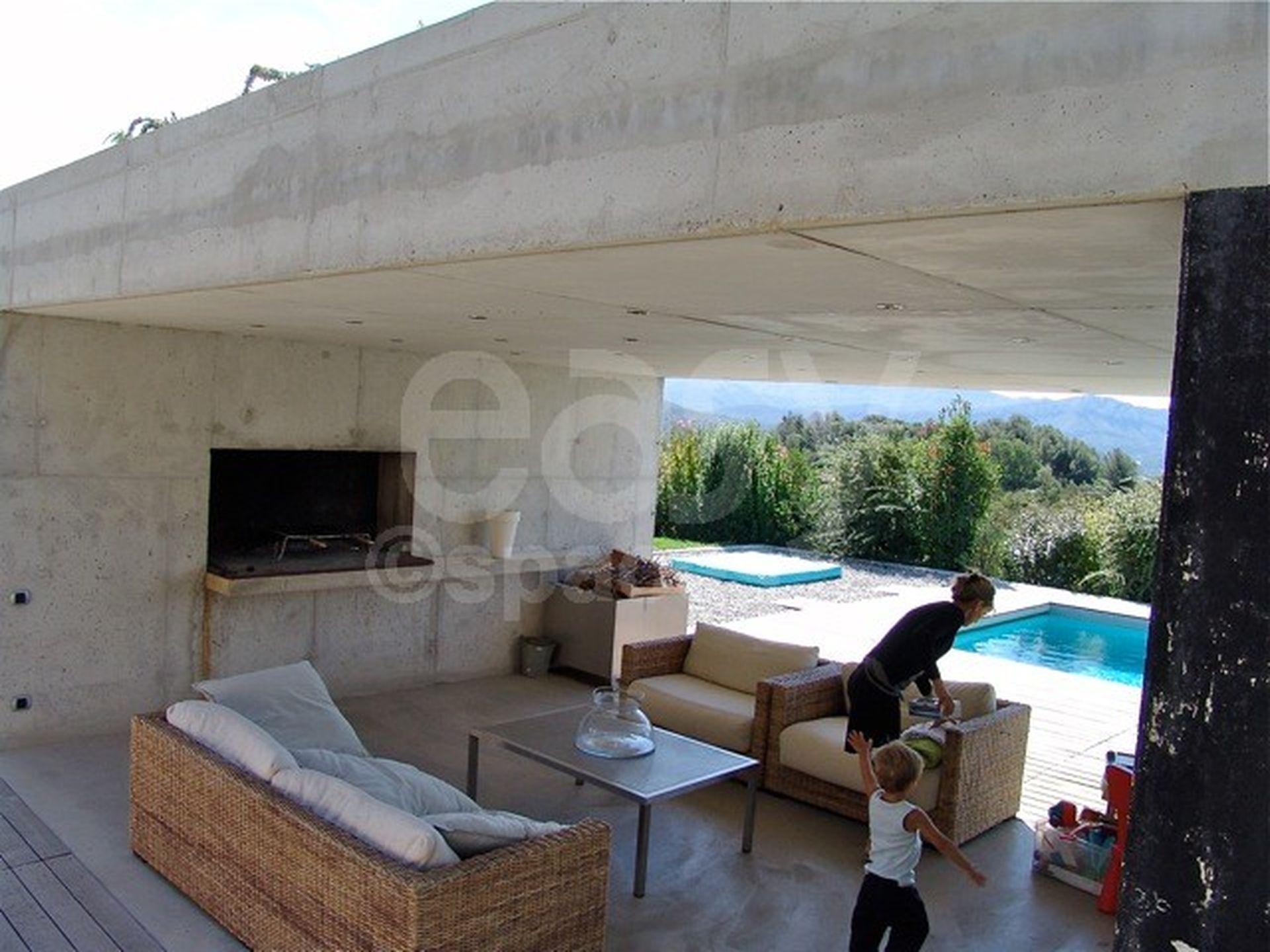 Piscine aux lignes simples, terrasses en teck, terrasse couverte, jardin à la pelouse impeccable, cette maison est parfaite pour les prises de vues photos ou tournages.