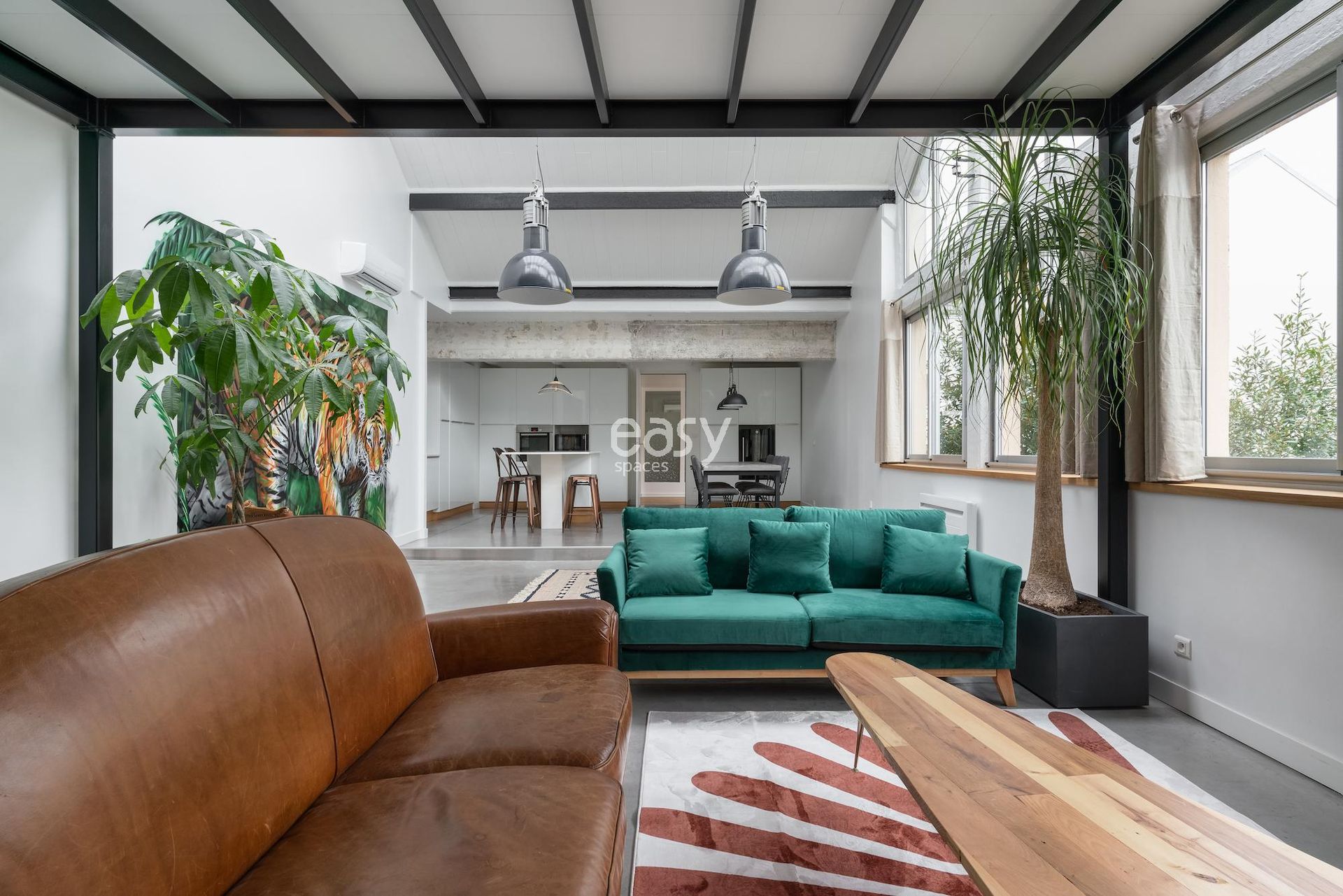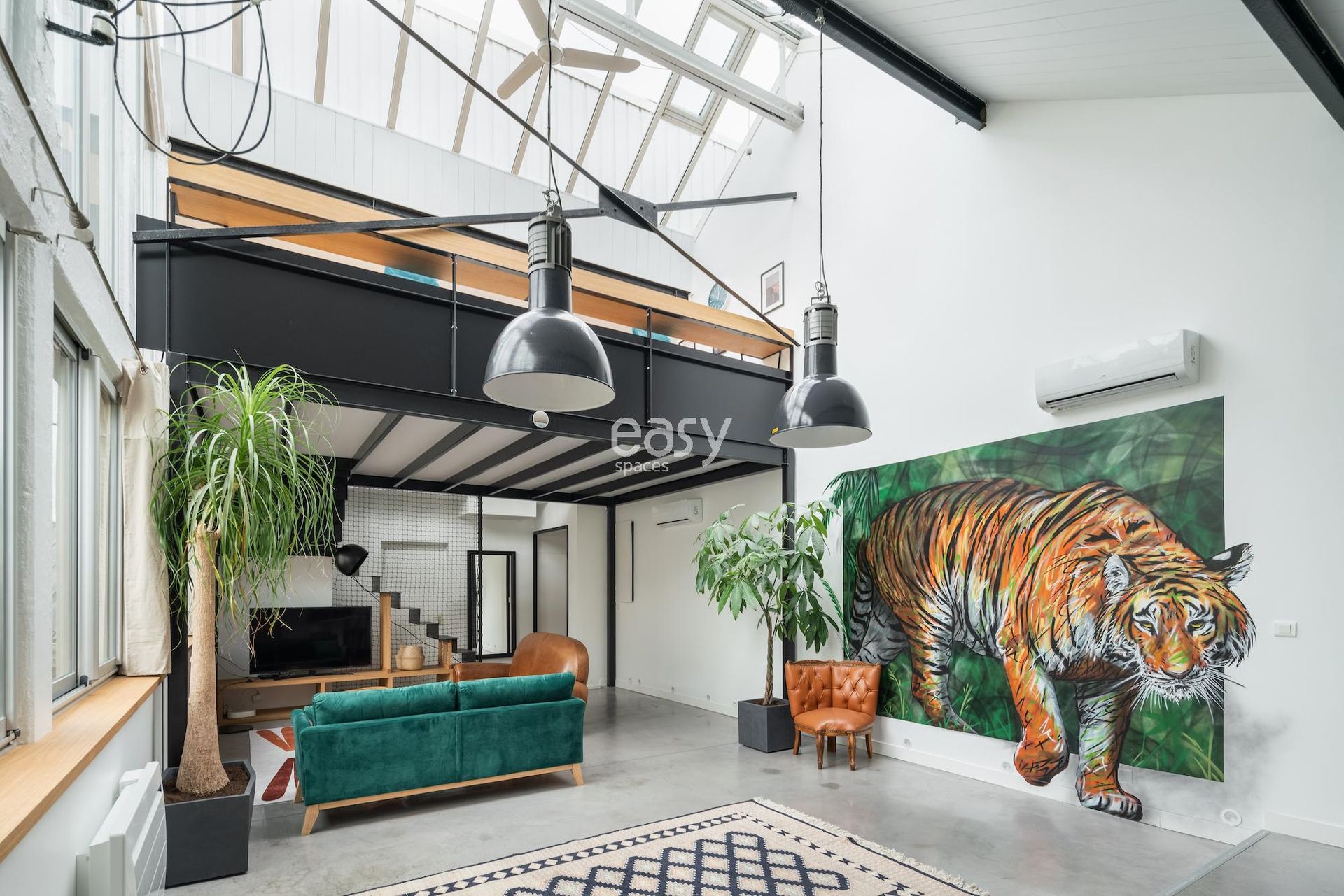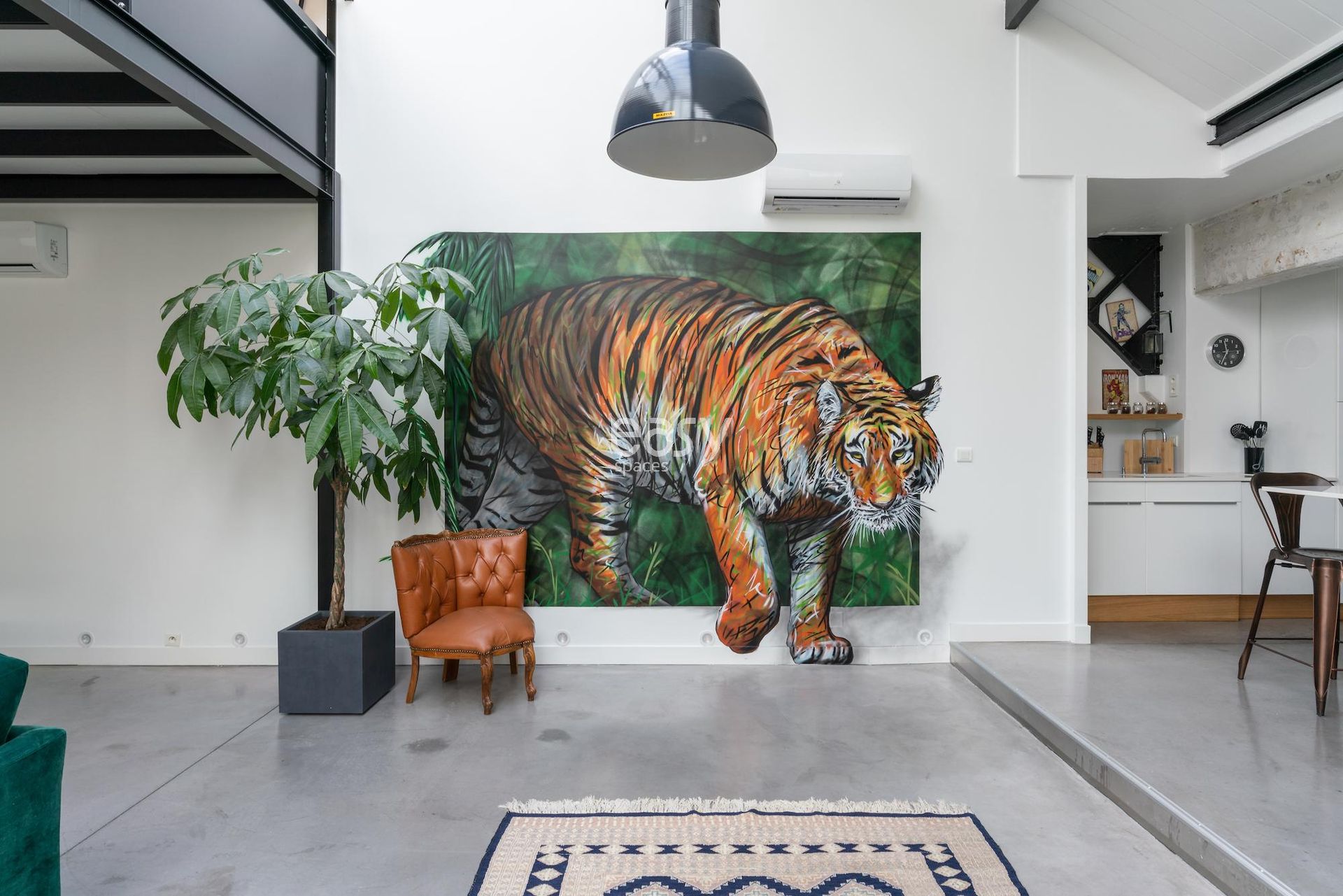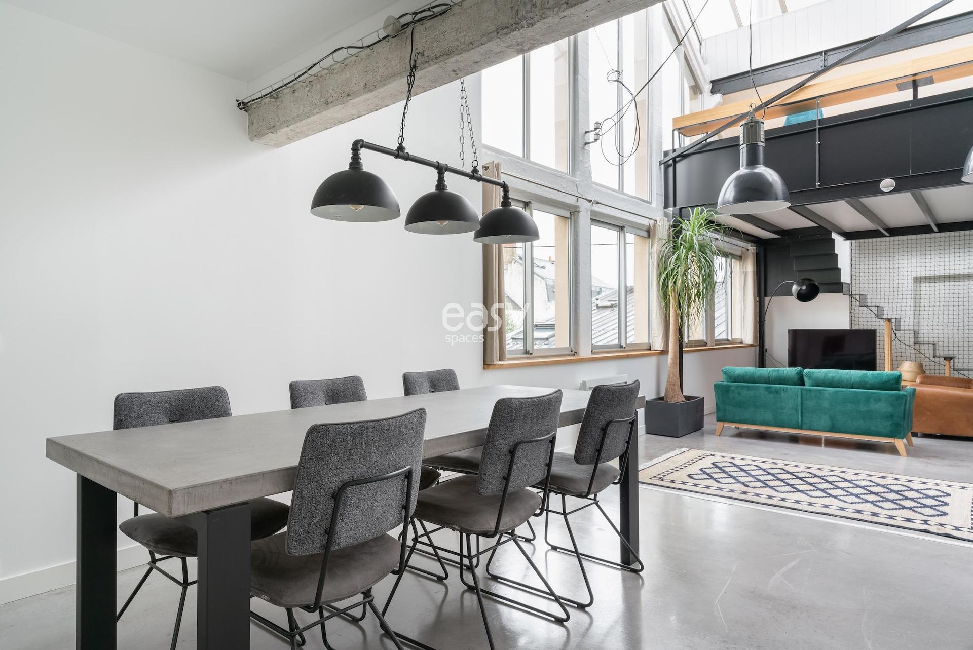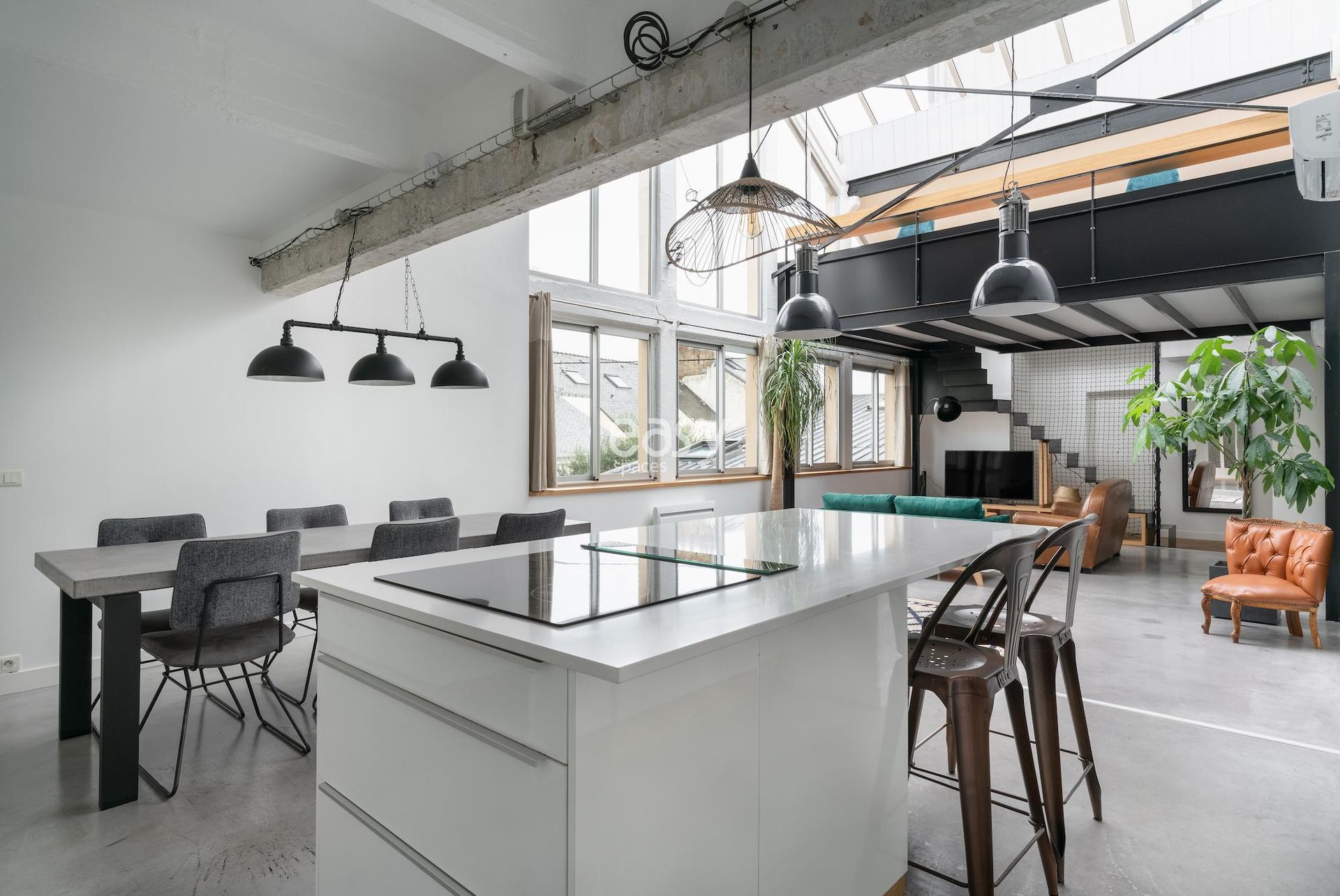 Son séjour de 75m2 est très lumineux et sa mezzanine offre un volume vraiment intéressant, avec son style industriel et sa déco épurée et moderne ce décor sera idéal pour vos shootings photos.