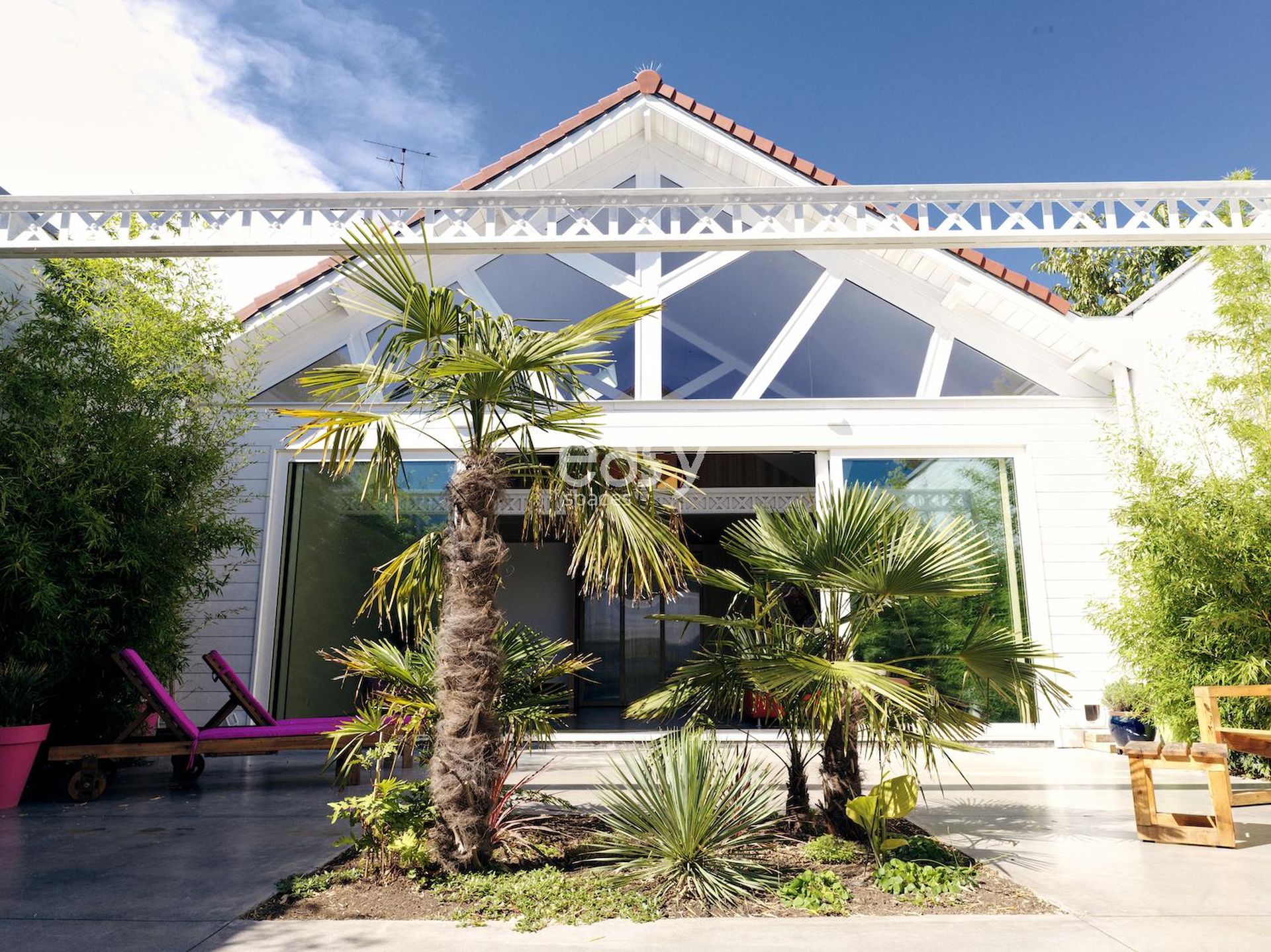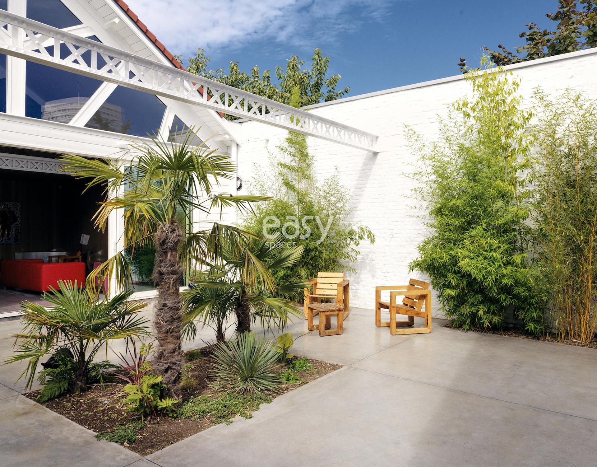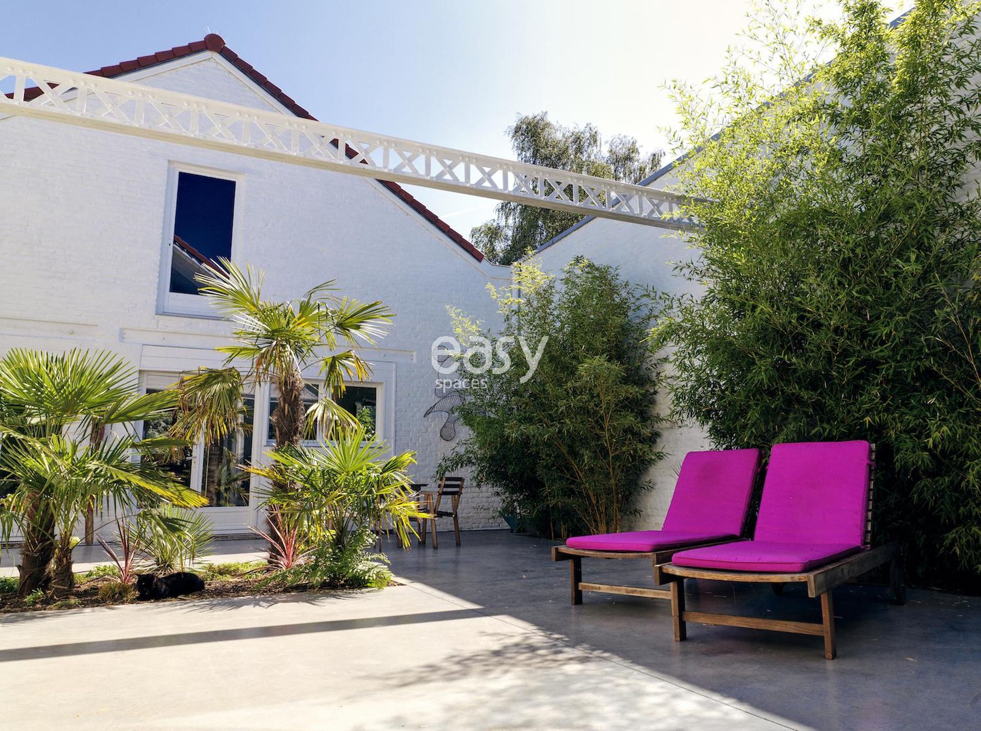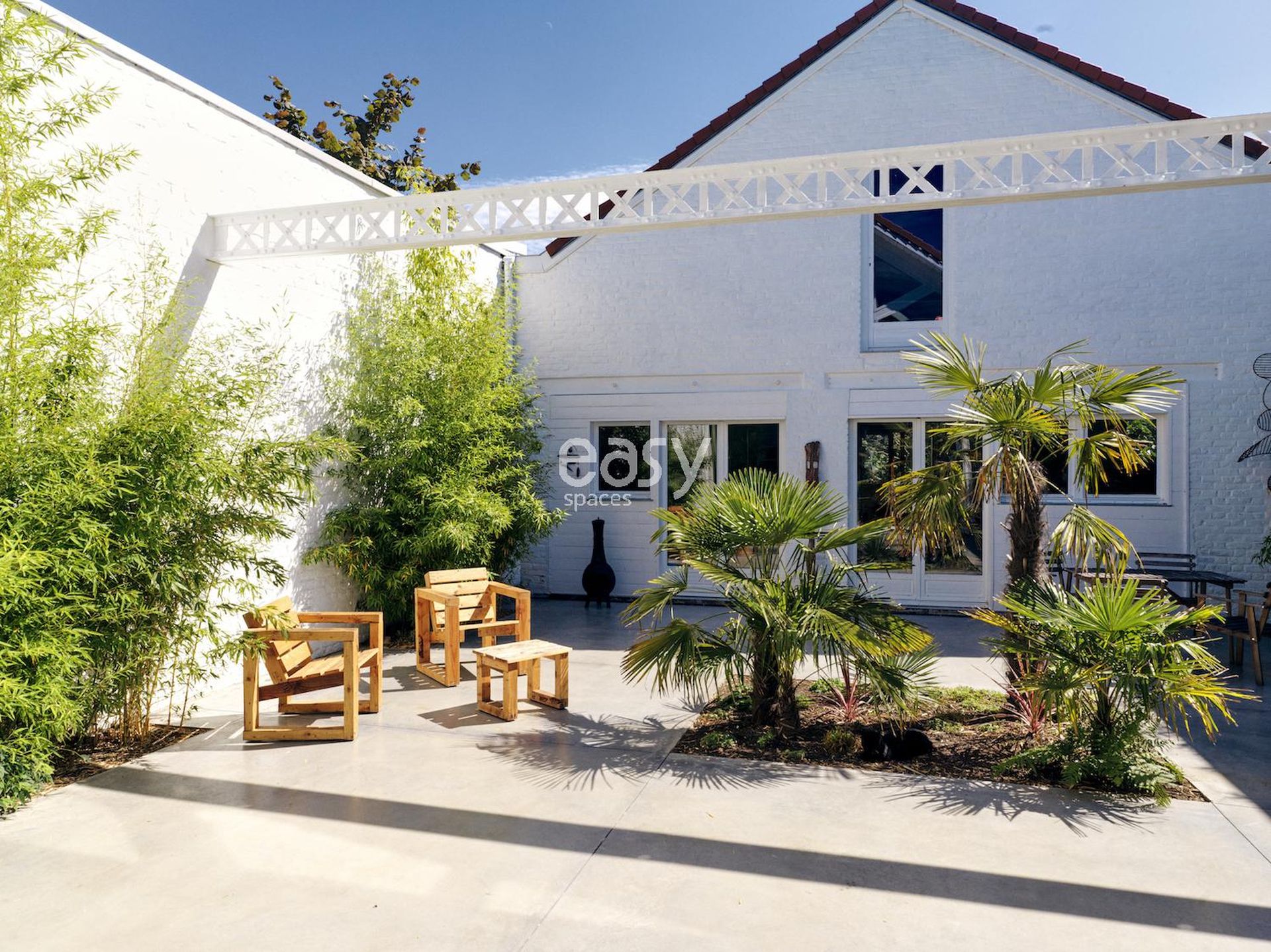 La particularité de ce loft pour shooting et tournage réside dans son alliance harmonieuse entre l'intérieur épuré et son patio exotique. Les palmiers et la végétation luxuriante créent une atmosphère unique, transportant instantanément vos productions photo/vidéo dans un ailleurs désirable. Cette dualité offre une variété de décors dans un même lieu, démultipliant les possibilités créatives sans multiplier les déplacements.