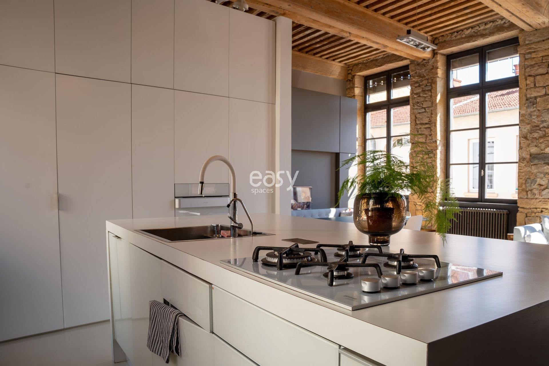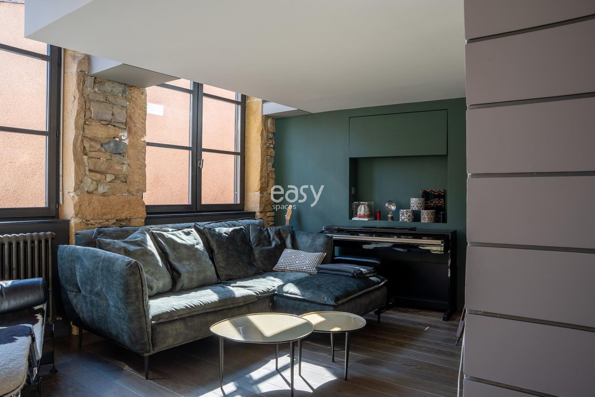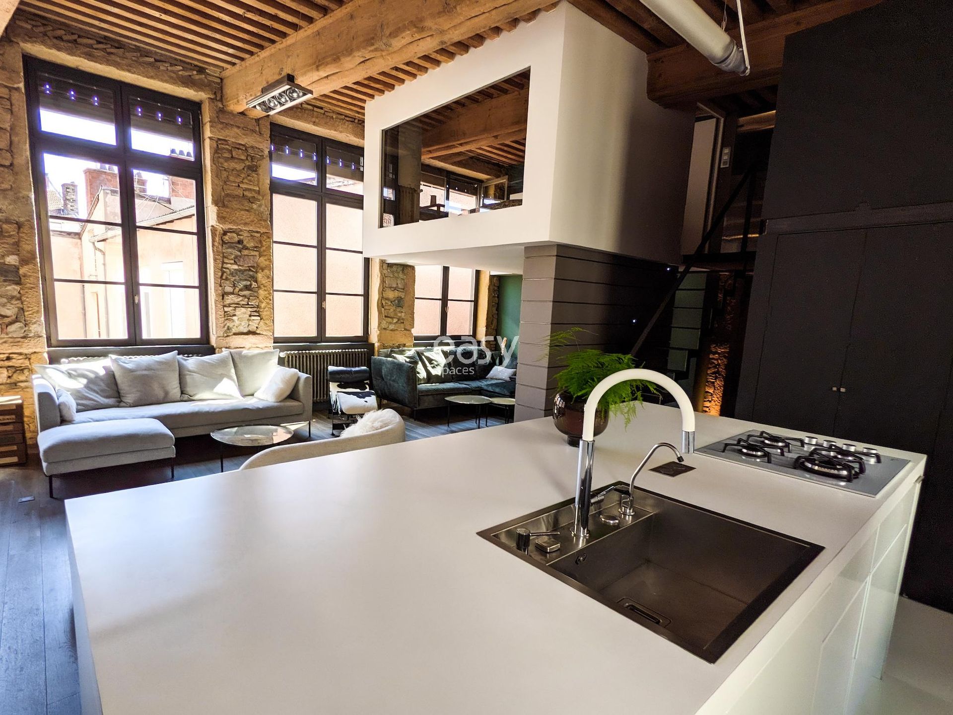 Ce superbe loft atypique dans le centre de Lyon, aux murs en pierres apparentes et aux poutres anciennes, offre un séjour lumineux avec cuisine ouverte de 70m2 et une décoration épurée, créant un cadre idéal pour shootings, tournages ou événements professionnels.