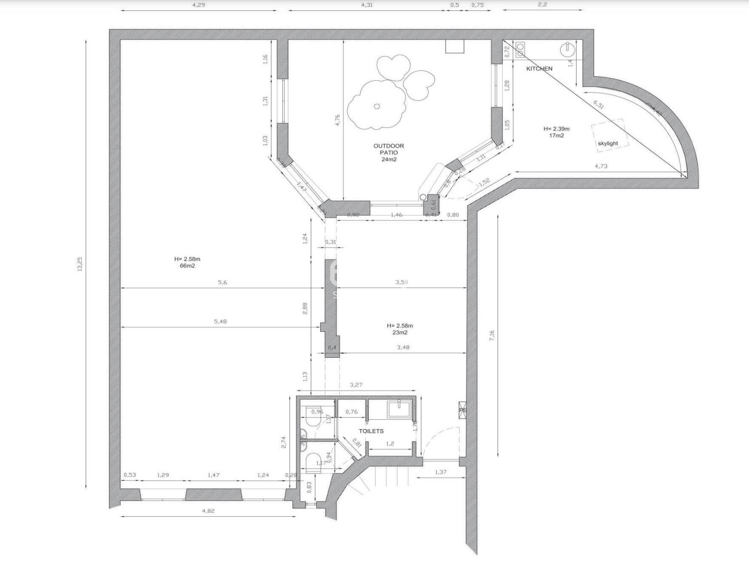 115 m² modulables + patio 25 m².
