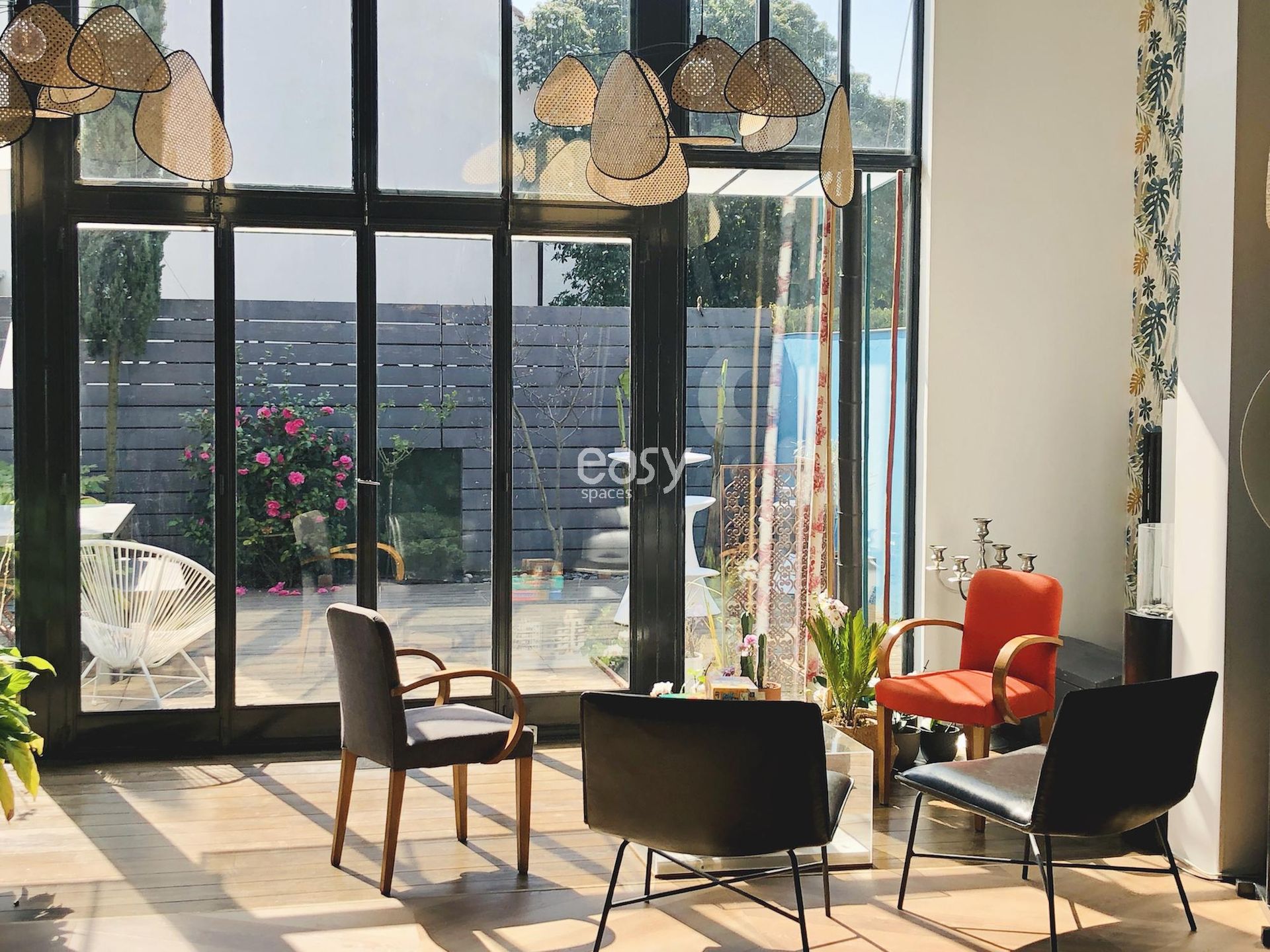 Ce loft de 250m2 situé près de Paris offre un grand espace séjour de 100m2 avec cuisine ouverte, des volumes importants, une belle hauteur sous plafond et un jardin privé, qui en font un cadre idéal aussi bien pour les projets artistiques que pour les événements d'affaires.