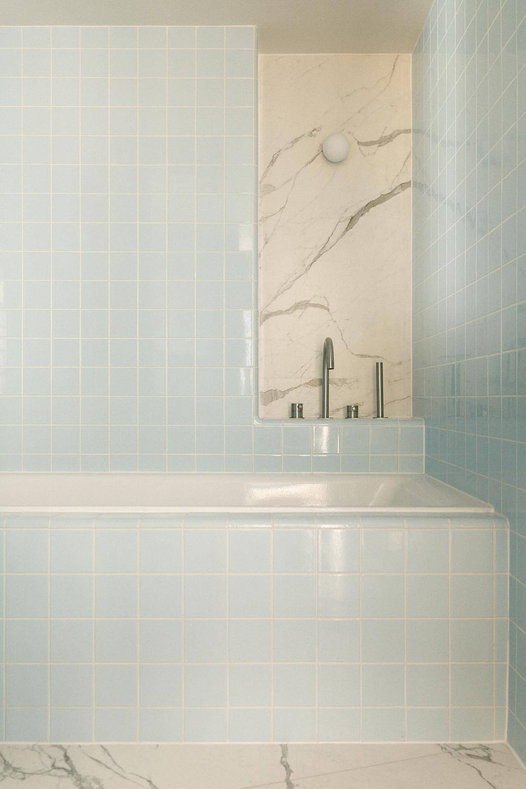 L’architecture intérieure repose sur un dialogue constant entre boiserie, carrelages colorés et textiles épais. La lumière naturelle, renforcée par l’exposition sud, vient souligner les textures et accentuer les contrastes chromatiques. Les murs clairs servent de toile de fond, laissant le mobilier et les éléments décoratifs jouer un rôle central dans la composition des images.