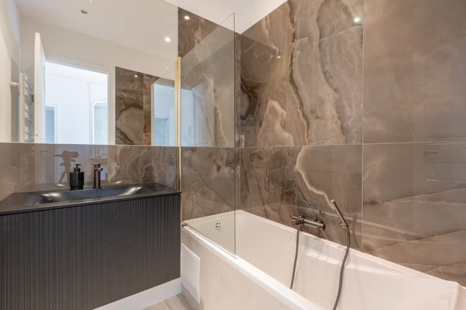 Cet appartement haussmannien design est parfaitement conçu pour favoriser la mise en valeur des marques, qu’il s’agisse d’un shooting produit, d’une publicité ou un tournage d'interview. Les tons neutres et les matériaux nobles en font un décor de tournage lumineux et polyvalent.