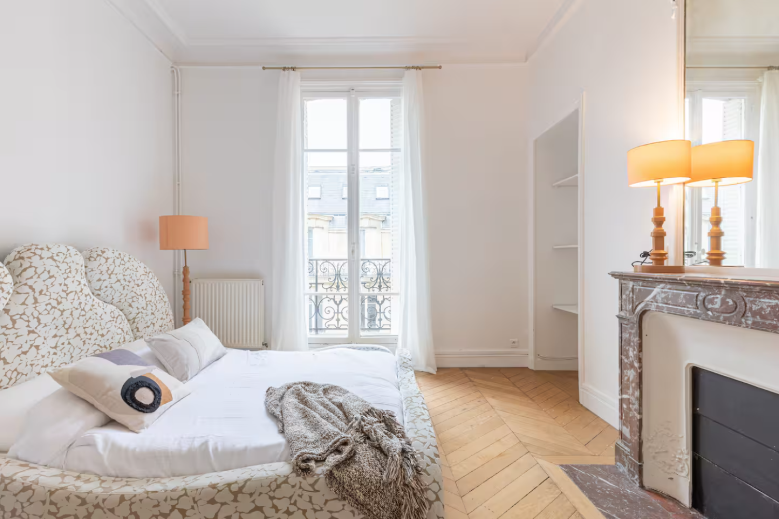 Niché dans un immeuble typiquement haussmannien, cet appartement spacieux déploie de superbes volumes baignés de lumière grâce à ses larges fenêtres et sa belle hauteur sous plafond. Le parquet ancien, les moulures et les cheminées d'époque s'accordent avec élégance à un mobilier aux lignes contemporaines, rehaussé par des touches décoratives soigneusement choisies.