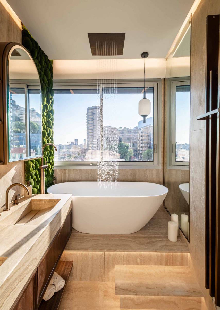 L’intérieur se distingue par une décoration moderne et raffinée, des matériaux nobles sur mesure et des finitions haut standing. Le séjour de 40 m² avec cuisine ouverte offre un espace de vie généreux et lumineux, idéal pour les shootings lifestyle, les tournages ou les événements professionnels. Le balcon de 30 m² exposé sud-est permet de profiter de la lumière naturelle toute la journée et d’une vue panoramique sur la ville, la mer et la verdure environnante.