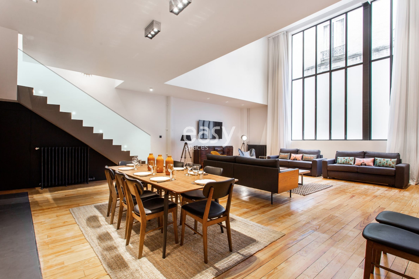 Ce joli appartement privé est à louer pour shootings, tournages et événements dans le centre de Paris, offrant un espace séjour de 70m2 avec cuisine ouverte et de grandes fenetres type atelier d'artiste, idéal pour tout projet demandant une belle hauteur sous plafonds.