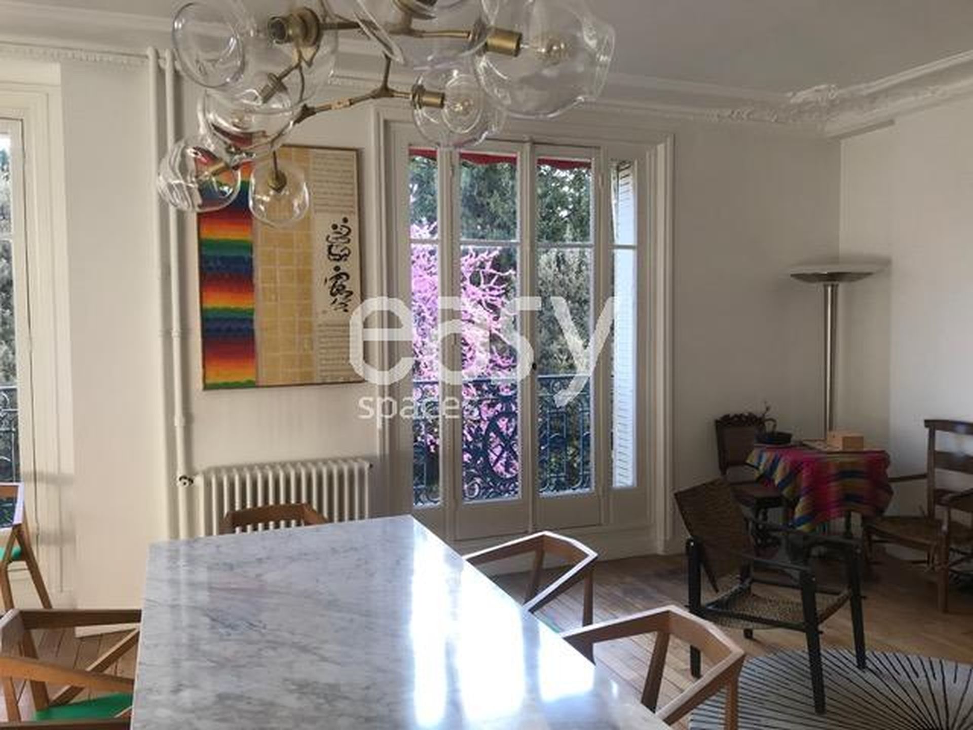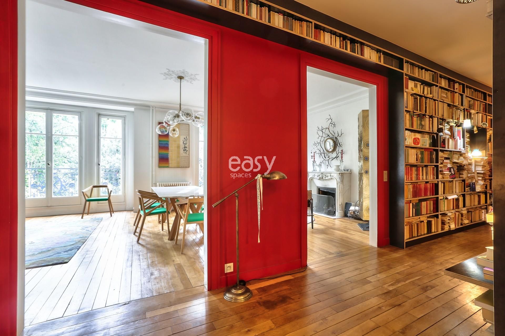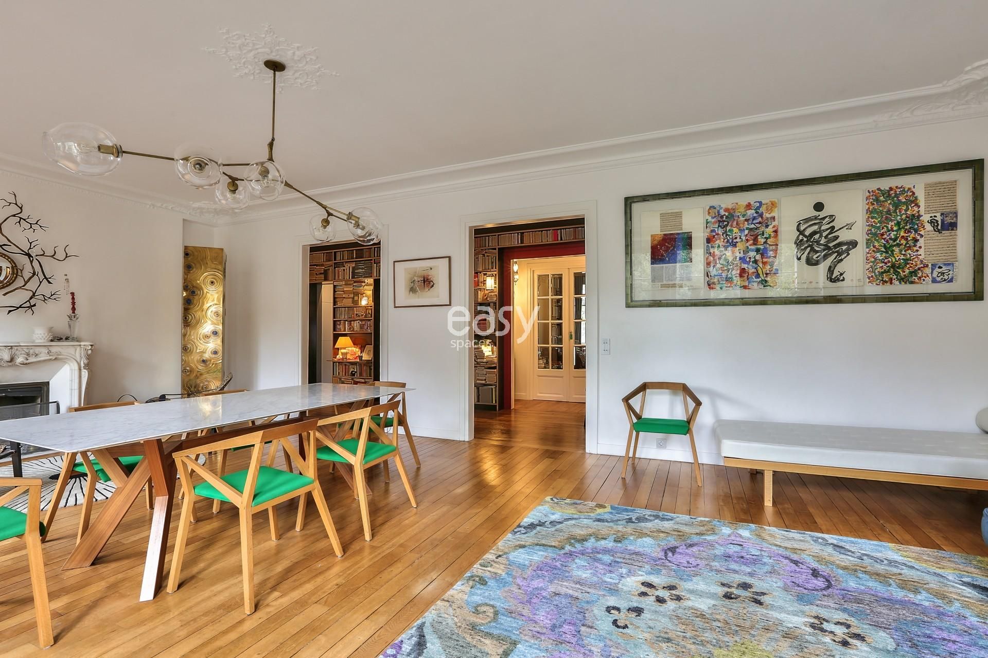 Bénéficiant d'un espace séjour lumineux de 40m2 avec parquet et moulures ainsi que sa belle cheminée ancienne en feront un décor idéal pour des productions photos pour de la de mode par exemple.