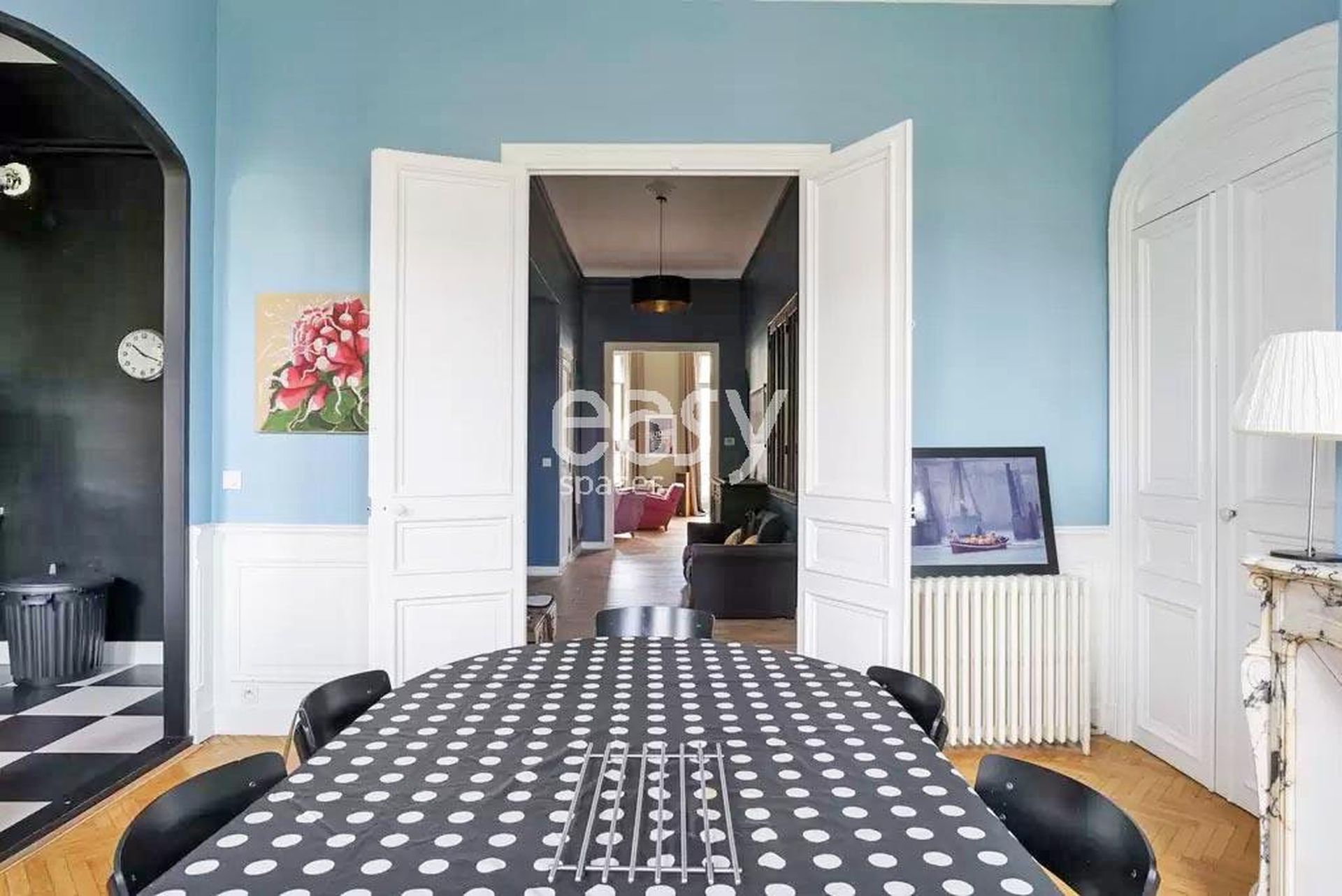 Les atouts du lieu : Appartement atypique avec des moulures, volumes impressionnants, lumineux et adaptable pour divers usages artistiques et professionnels.