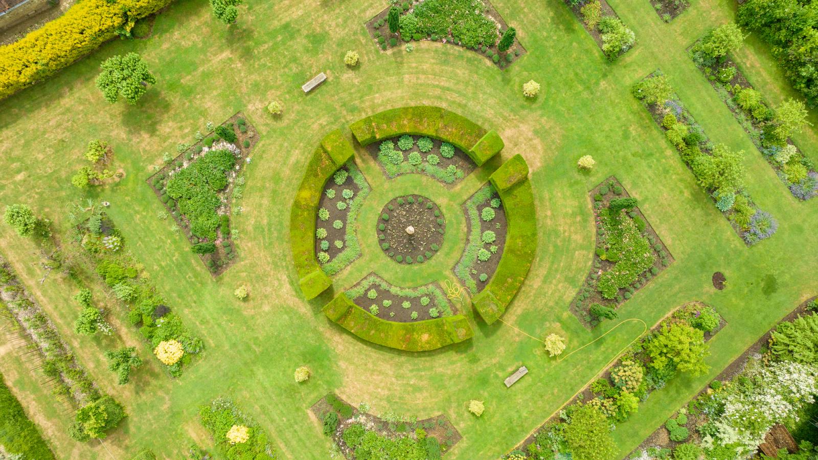 Un jardin plat soigneusement entretenu, idéal pour tournages, prises de vue ou événements extérieurs