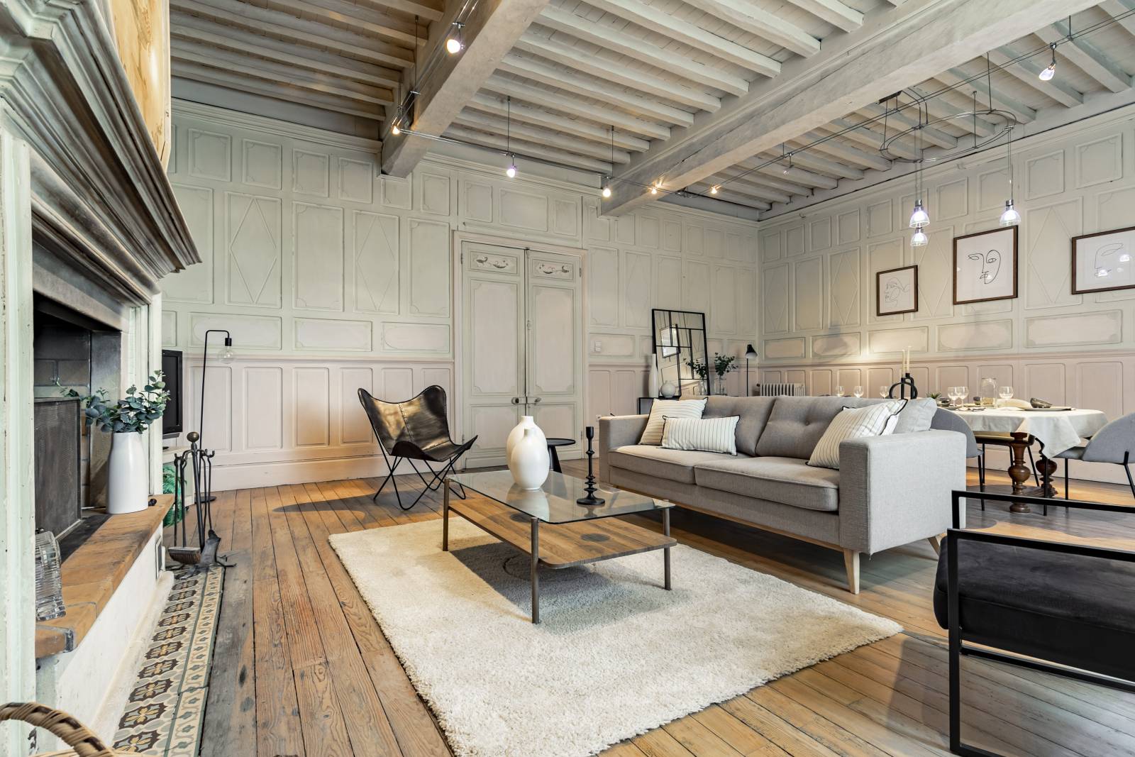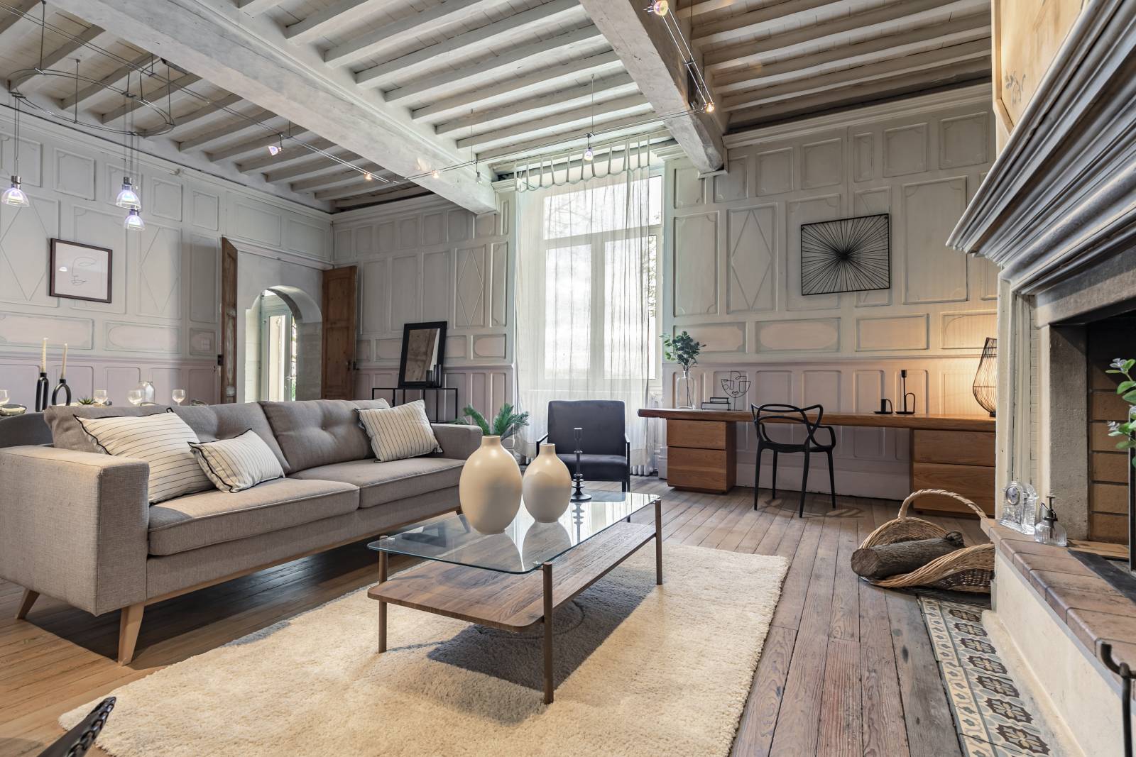 Les matériaux nobles, les cheminées d’époque, les pierres apparentes et les touches contemporaines créent un équilibre parfait entre confort et caractère.