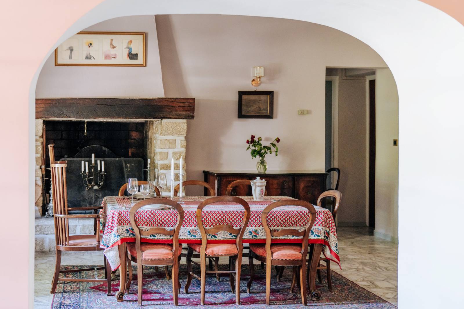 Les salons en enfilade, la salle à manger aux poutres apparentes et les volumes généreux offrent une grande diversité de cadrages.