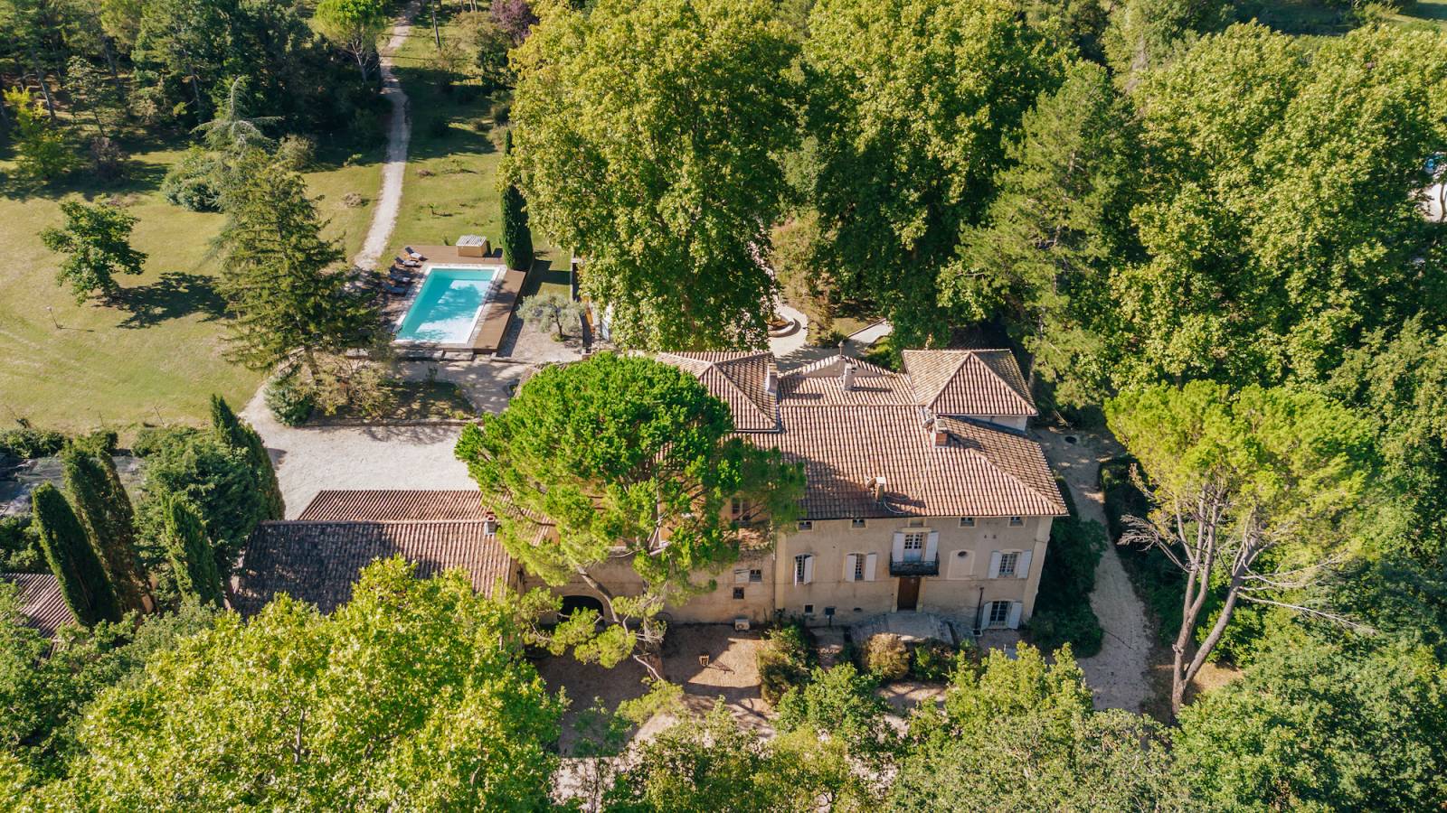 Extérieurs : Parc de 5 hectares, terrasse plein sud, piscine