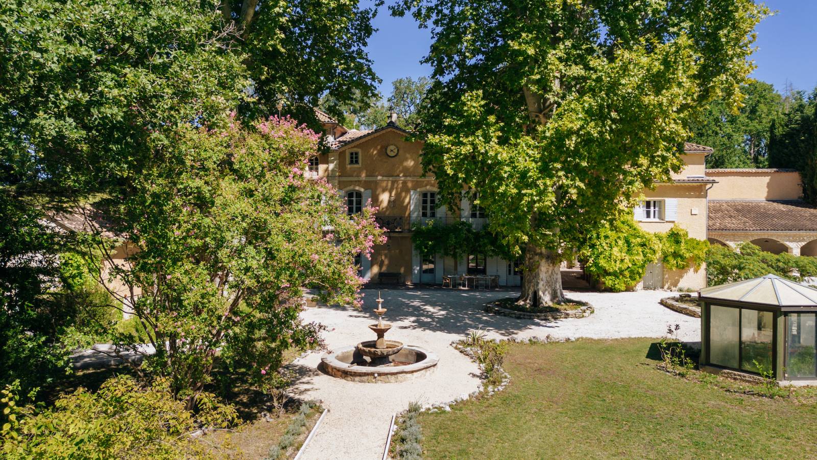 Terrasse plein sud avec grands platanes : 500 m²
