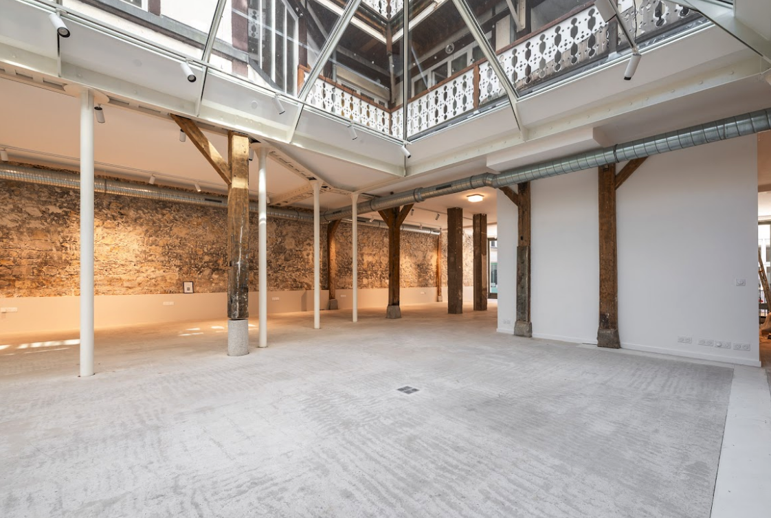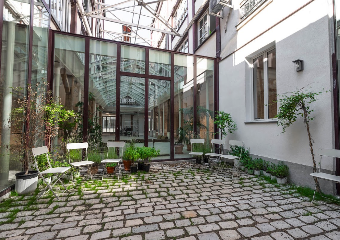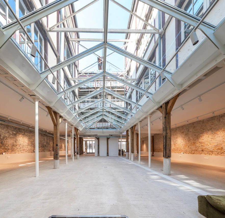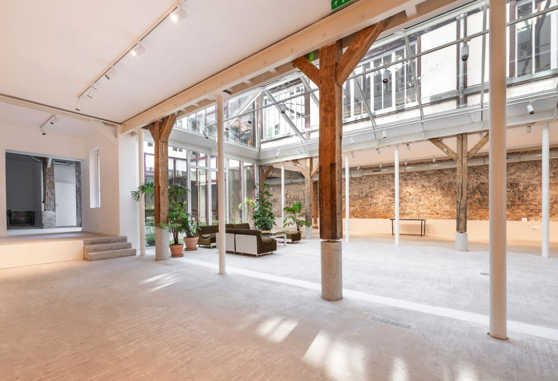 Organisé autour d’une grande verrière spectaculaire et d’un patio extérieur de 30 m², cet espace offre un décor atypique, lumineux et très graphique, particulièrement recherché pour les productions créatives et les événements professionnels.