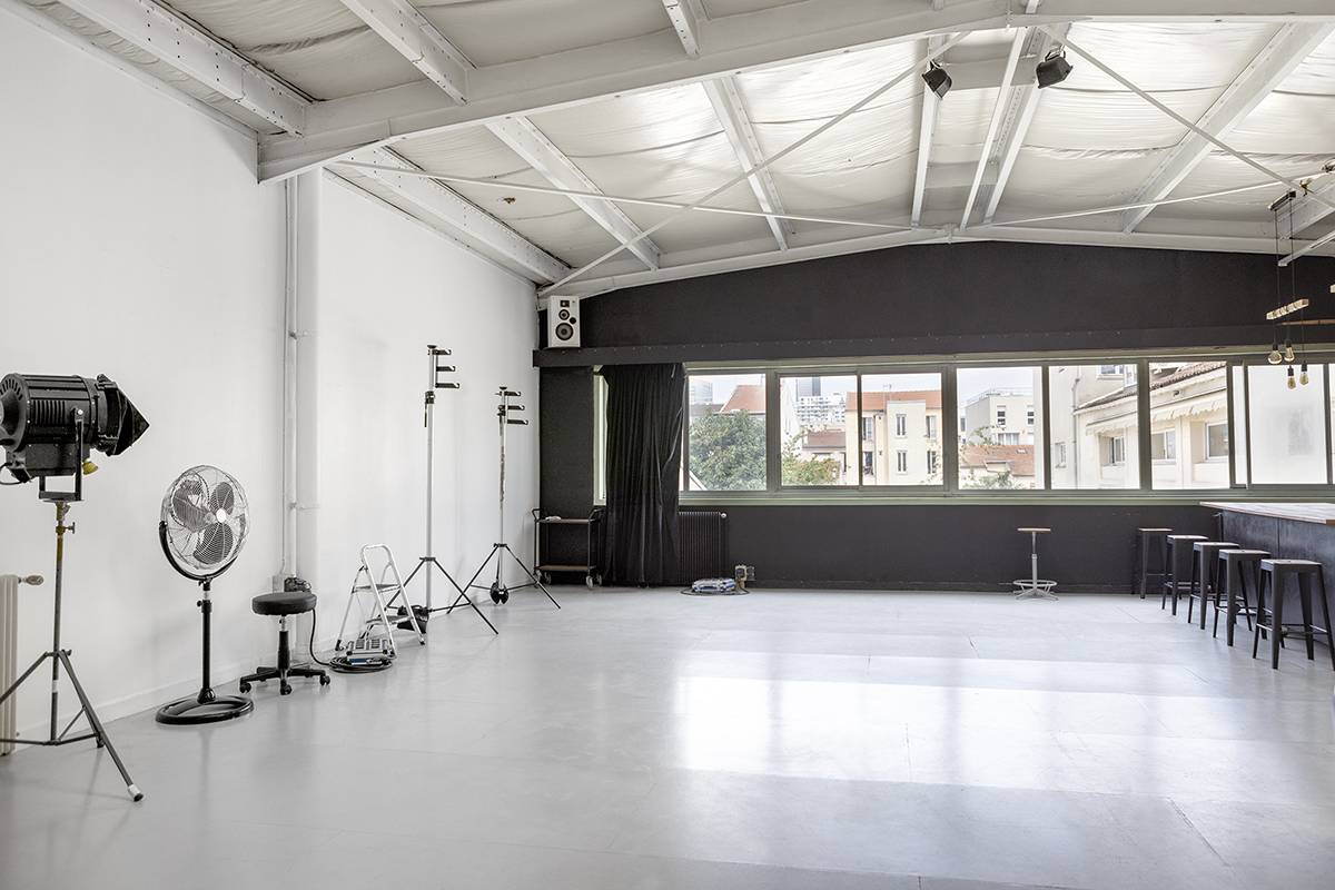 La hauteur sous plafond de 4 m permet une installation technique confortable pour les équipes photo et vidéo.