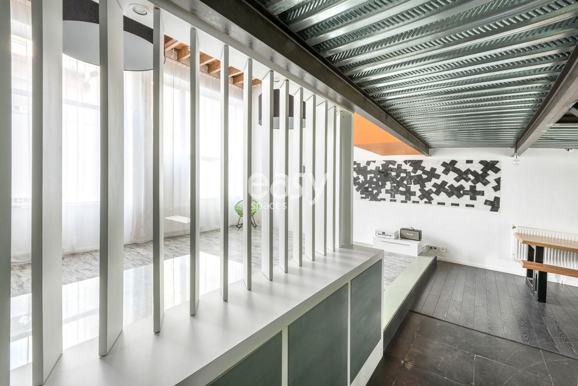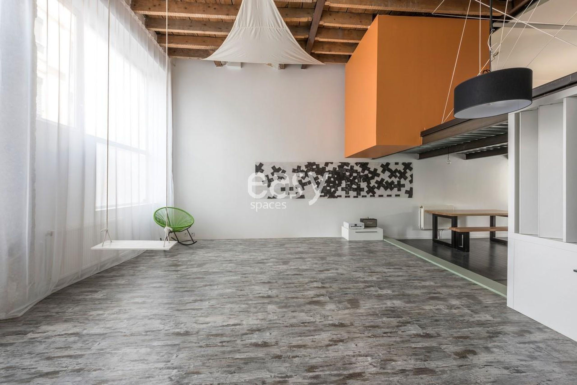 Véritable décor contemporain près de Lyon, ce loft conjugue esthétique industrielle et minimalisme élégant : grandes hauteurs, poutres apparentes, sol gris texturé, murs blancs ponctués de panneaux acoustiques, et une lumière naturelle filtrée par de grands voilages. Louer un loft pour shooting et tournage proche de Lyon n’a jamais été aussi simple aussi pour des événements professionnels exigeants : mode, publicité, brand content, interview, film corporate ou vidéo-clip.