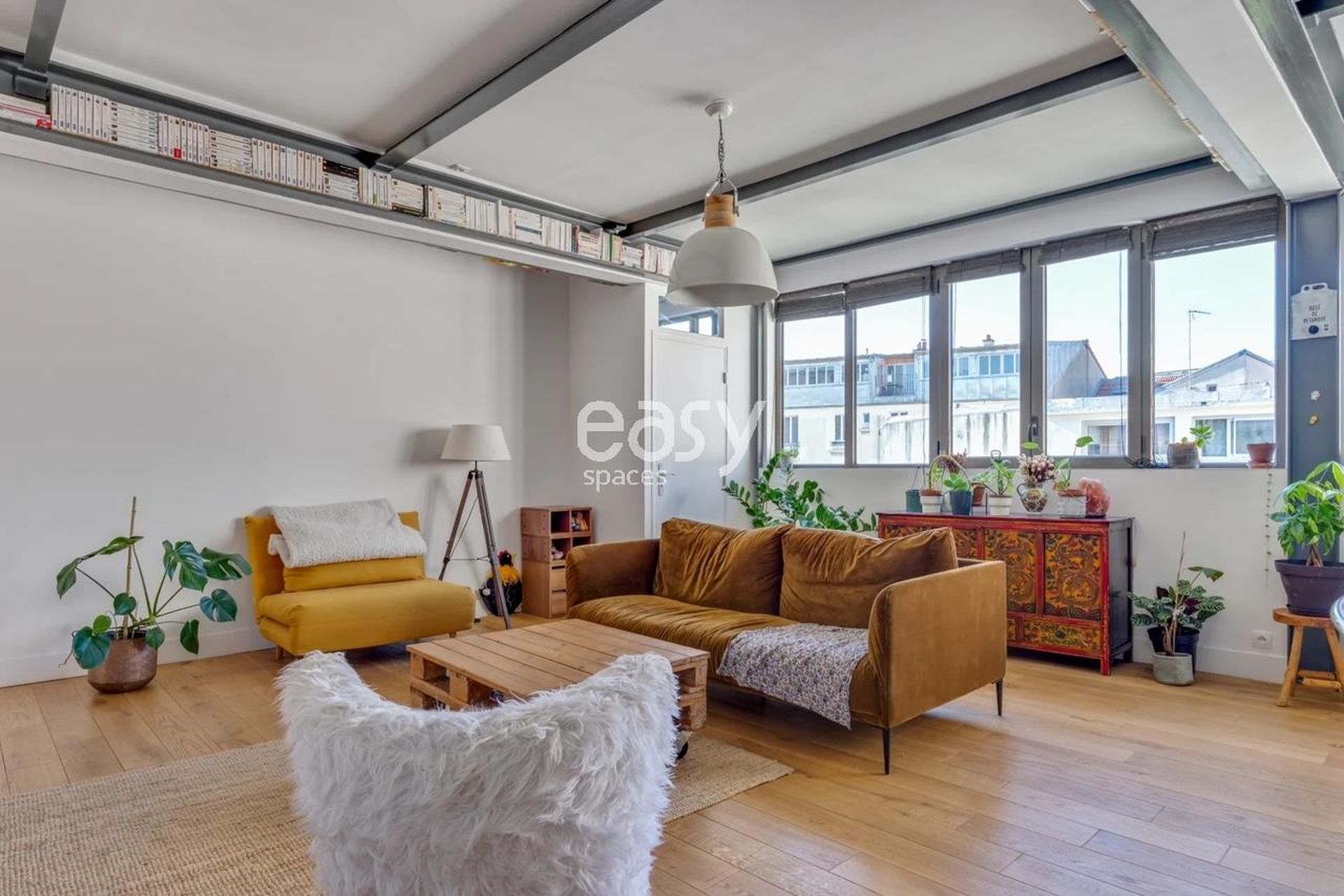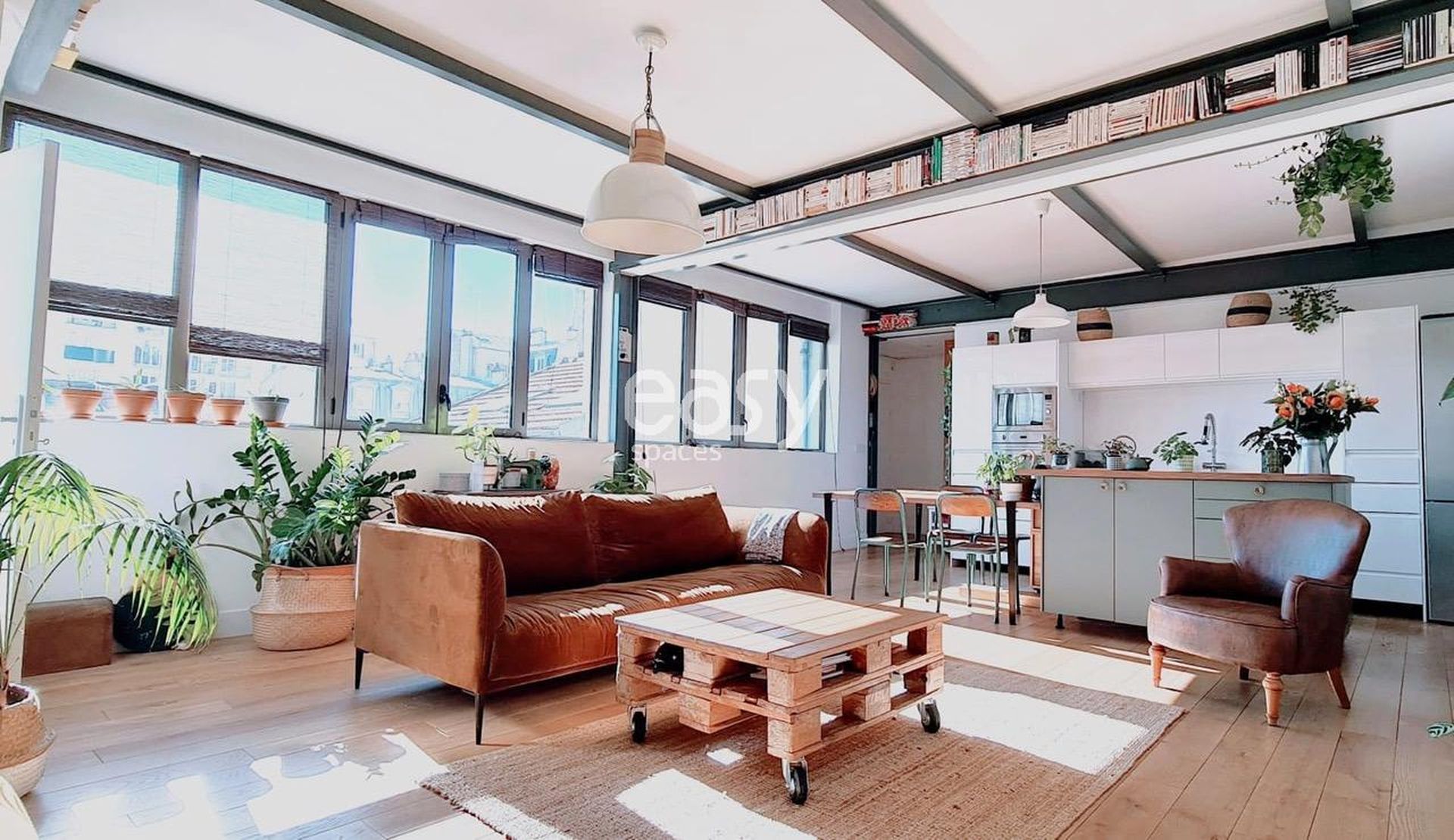 Cet appartement lumineux de type loft comprend un vaste espace séjour de 50m2 et un magnifique rooftop de 100m2, convenant aussi bien à un shooting de mobilier de jardin qu'à un lancement de produit ou autre événement d'entreprise.