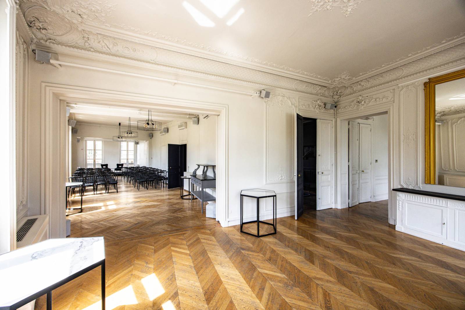 Avec ses moulures élégantes, son parquet d’époque et ses grandes fenêtres baignant l’espace de lumière naturelle, ce lieu mêle charme classique et fonctionnalité. Sa configuration modulable permet de l’adapter facilement selon vos besoins : showroom, cocktail presse, salon de présentation ou studio photo éphémère.
