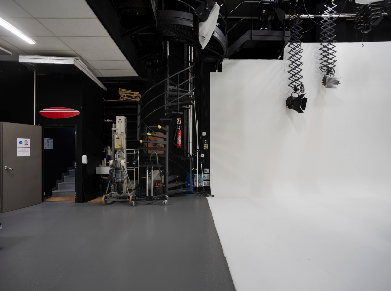 Le cyclorama blanc permet des prises de vue propres et modernes, parfaitement adaptées aux campagnes publicitaires, shootings e-commerce, packshots ou tournages corporate.