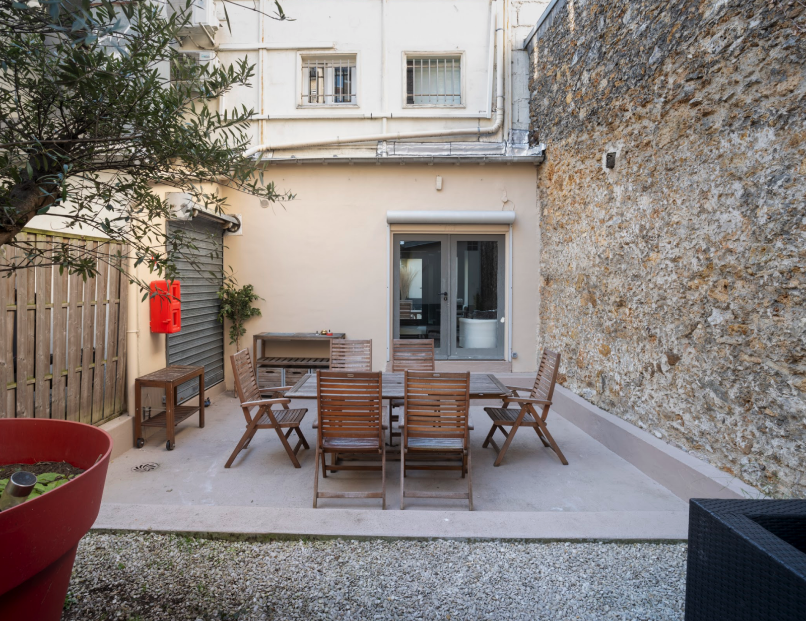 La cour extérieure de 70 m² constitue un espace complémentaire intéressant : zone technique, stockage, catering ou prises de vues additionnelles.