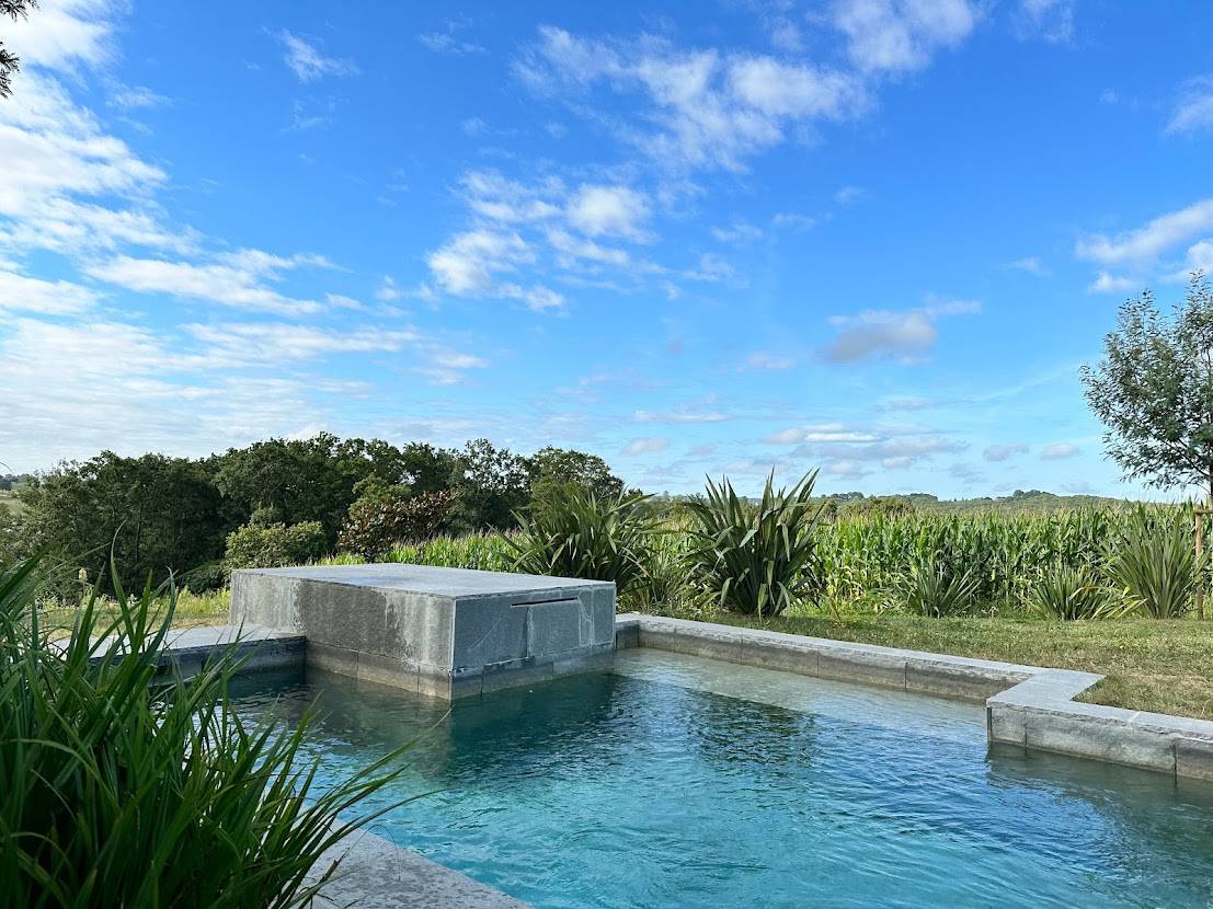 À l’extérieur, le jardin plat arboré et la piscine au design original composent un décor chic et moderne, idéal pour des séances photo estivales ou des tournages en lumière naturelle.