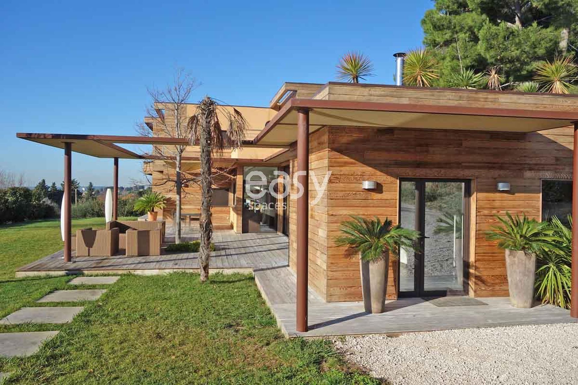 Voici une belle maison en bois contemporaine à louer pour une production photo et tournage de film dans la région Paca à proximité de Aix-en-Provence.