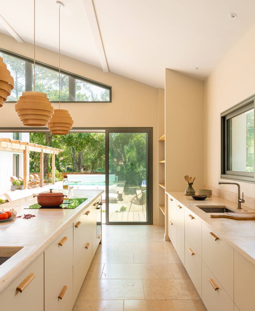 Avec un séjour de plus de 100m² baigné de lumière naturelle, elle offre un espace de vie ouvert et modulable, parfait pour accueillir shootings ou événements professionnels sur la côte landaise;