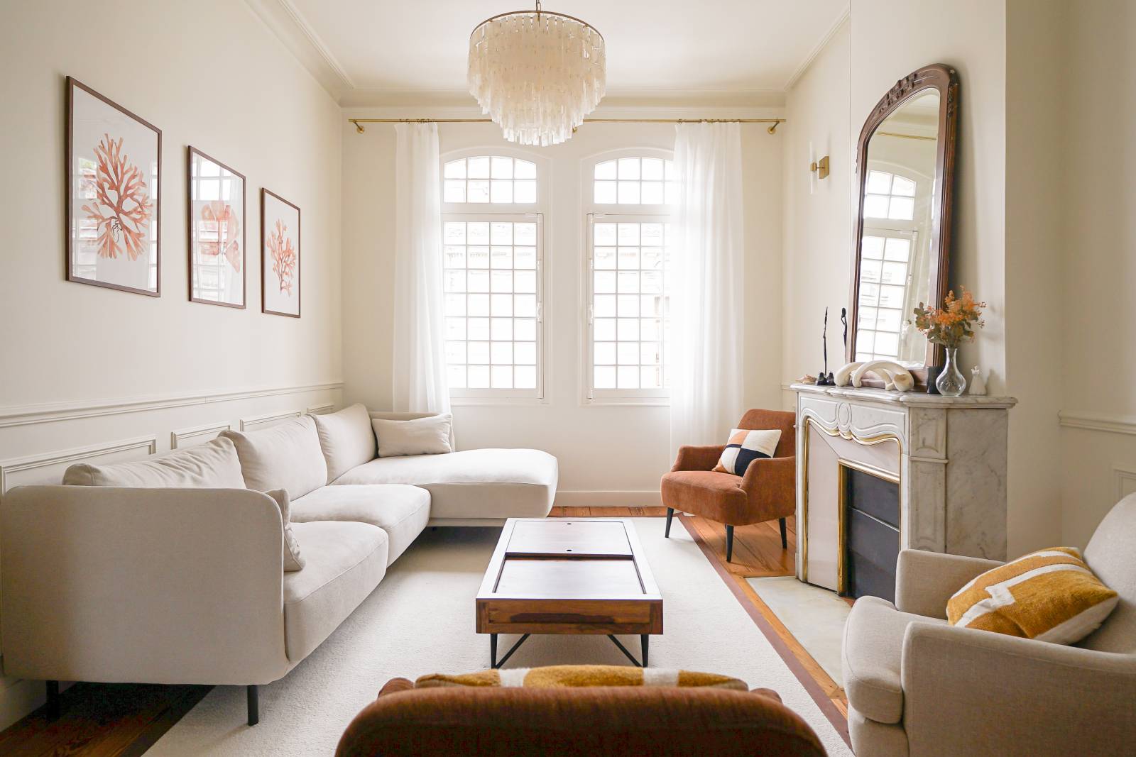 La décoration intérieure, à la fois cosy et contemporaine, a été pensée avec soin. Les matériaux, les textures et les teintes douces créent une atmosphère apaisante et élégante, parfaitement adaptée aux shootings mode, shootings enfant ou tournages intimistes.