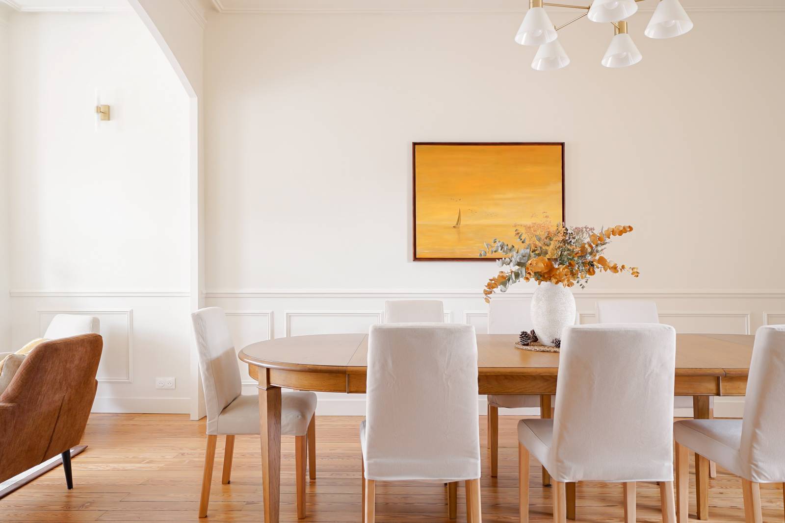 En prolongement du salon, une salle à manger en enfilade sera parfaite pour des mises en scène de repas ou de moments de partage.
