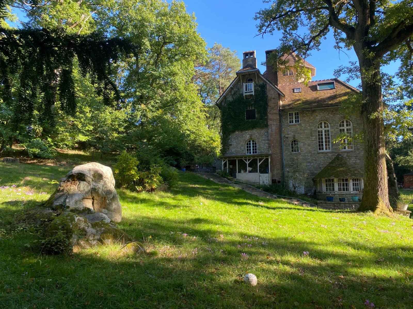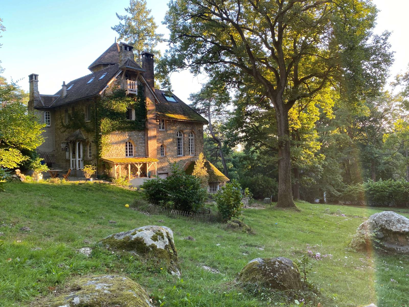 Découvrez le lieu : PEARS, à 75 km au Sud de Paris. Un décor avec un relief rare : un parc très boisé, des clairières, des blocs de roche couverts de mousse et une bâtisse en vieille pierre.