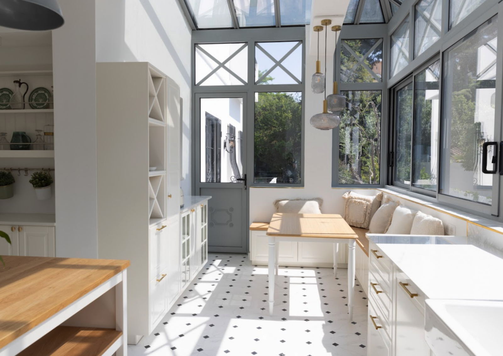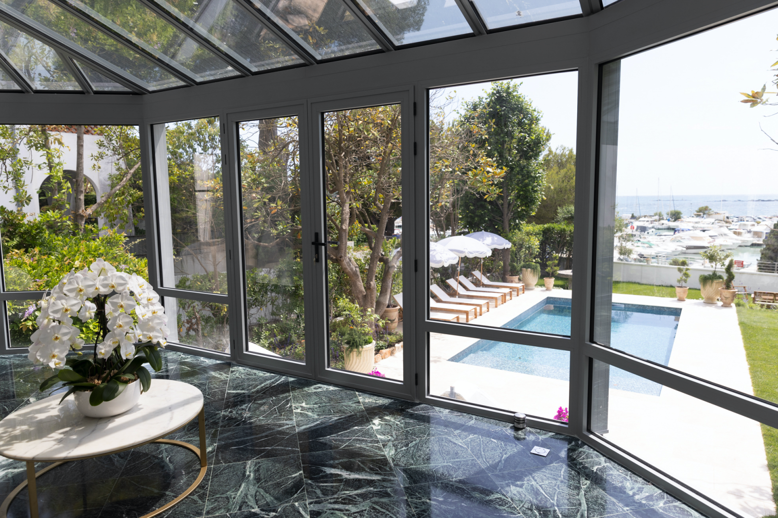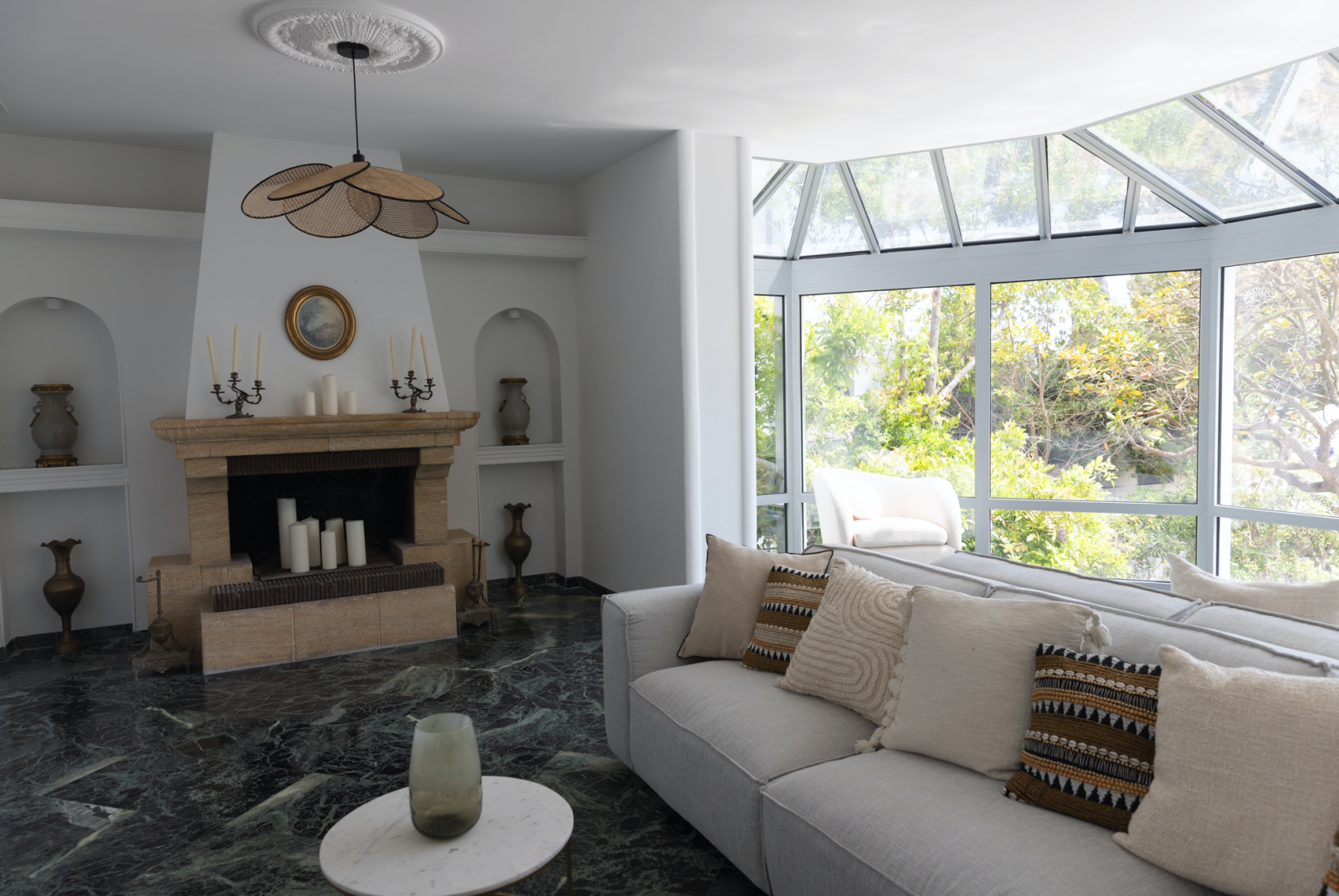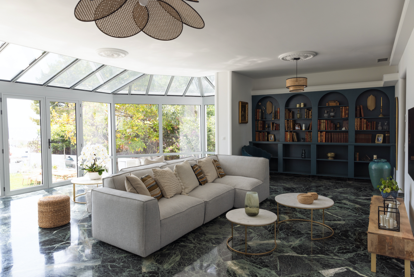 Le salon principal avec véranda constitue un espace particulièrement intéressant pour les productions mode, éditoriales ou publicitaires.