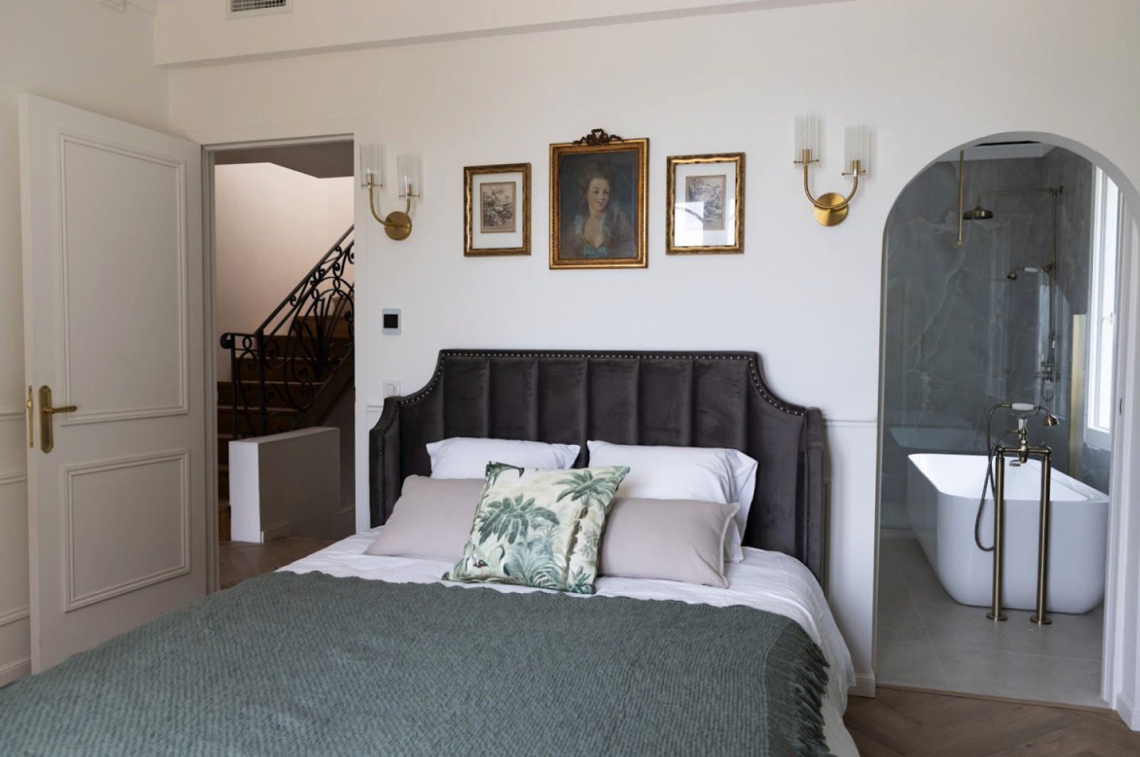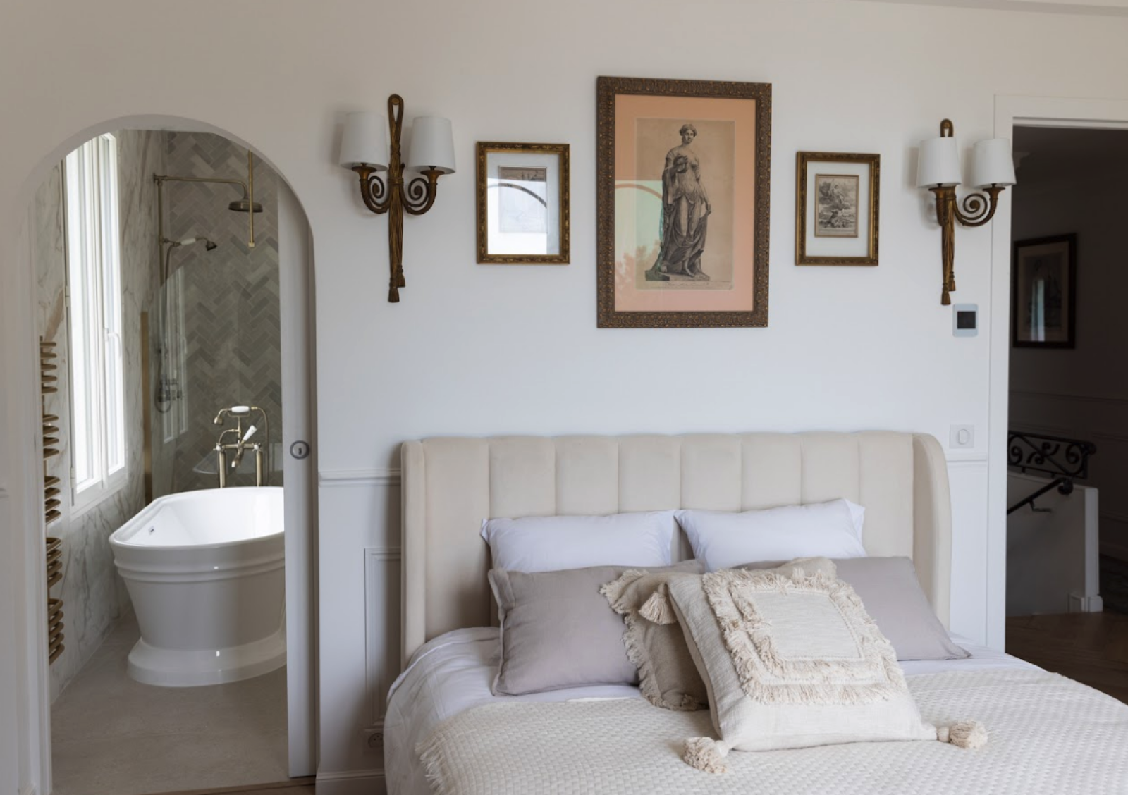 Cette villa de style art déco développe une atmosphère cinématographique naturelle, sublimée par une décoration soignée mêlant pièces anciennes et élégance intemporelle.