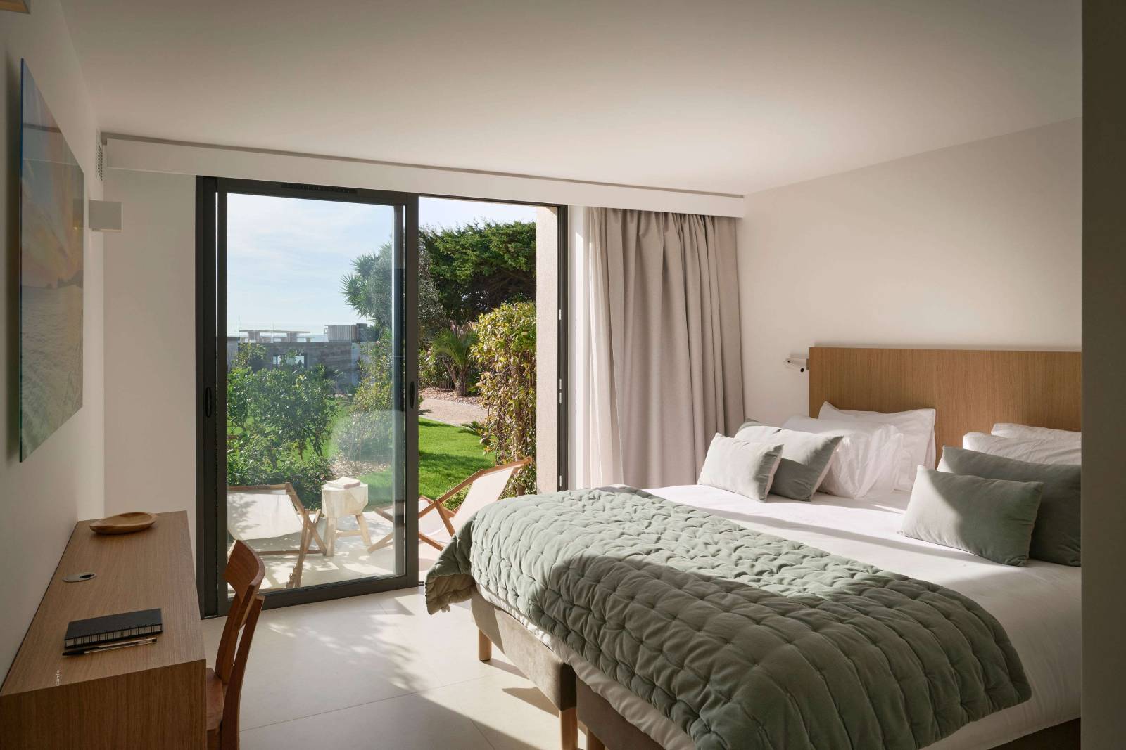 Les chambres, elles, restent minimalistes : tête de lit bois, suspensions fines, et accès extérieur via baies, ce qui multiplie les angles (intérieur/extérieur) et les variations de profondeur de champ.