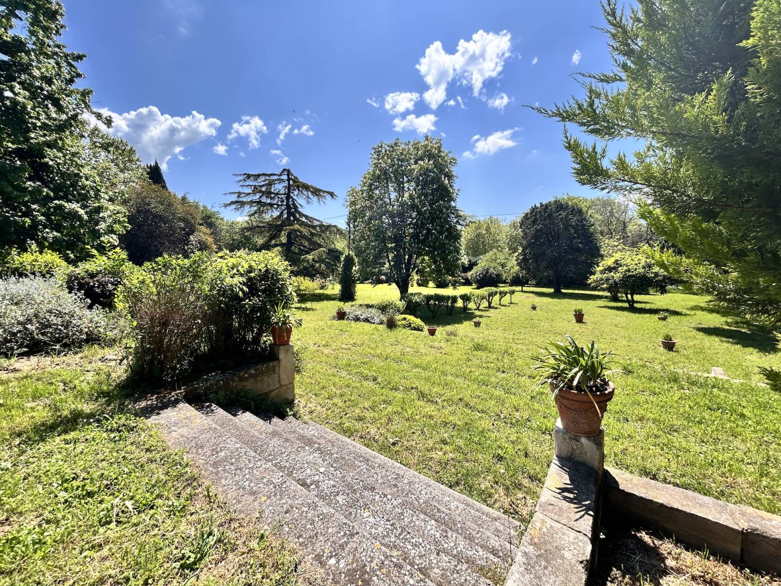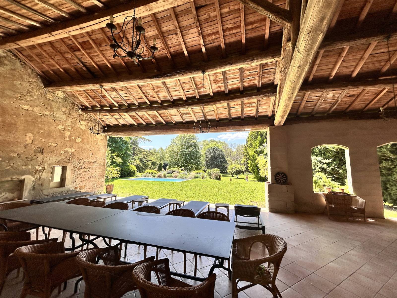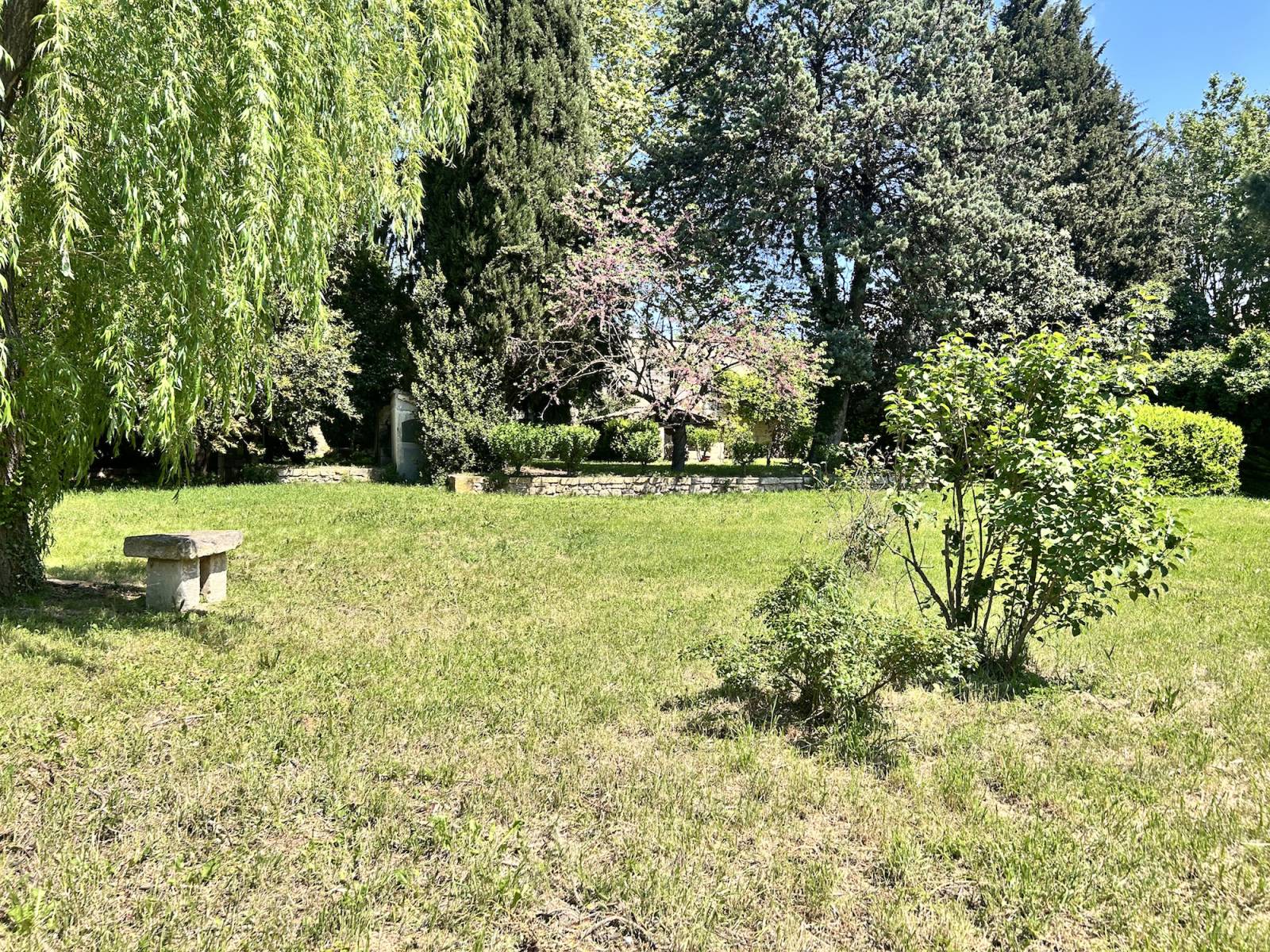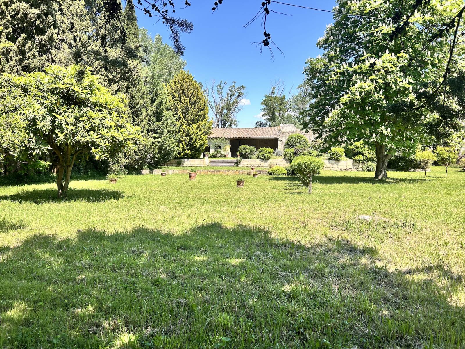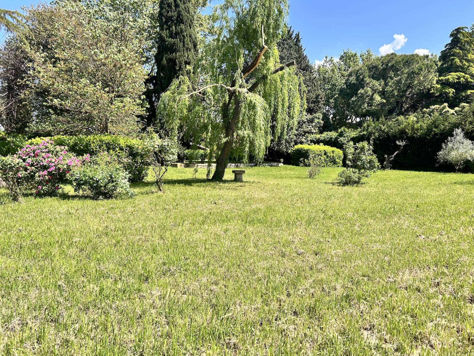 Ce jardin au style champêtre s’étend sur une vaste parcelle plane, entièrement boisée et sublimée par une végétation méditerranéenne luxuriante. On y découvre une piscine bassin ancien qui s’intègre parfaitement dans ce décor campagne à la fois apaisant et inspirant.