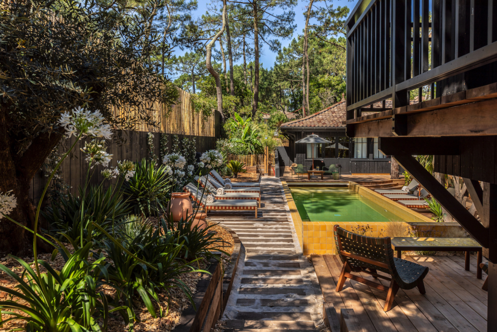 L'architecture de la maison typique des maisons du Cap-Ferret, son intérieur en bois, sa décoration soignée et ses beaux extérieurs avec sa piscine type bassin naturel; ses nombreuses et jolies ambiances en font un décor très photogénique avec de multiples possibilités pour vos prises de vues.