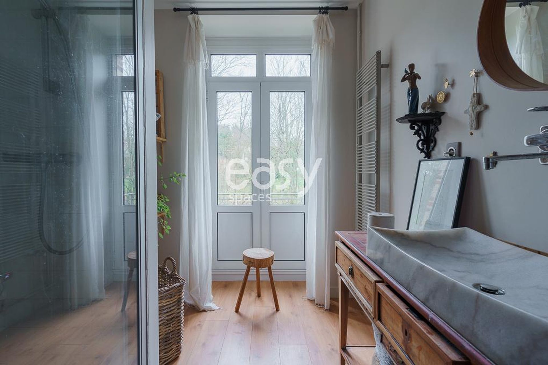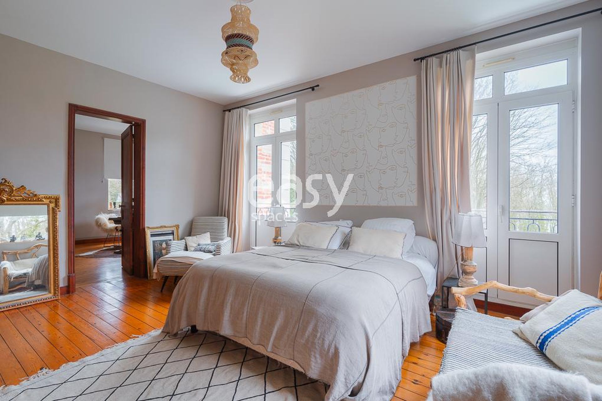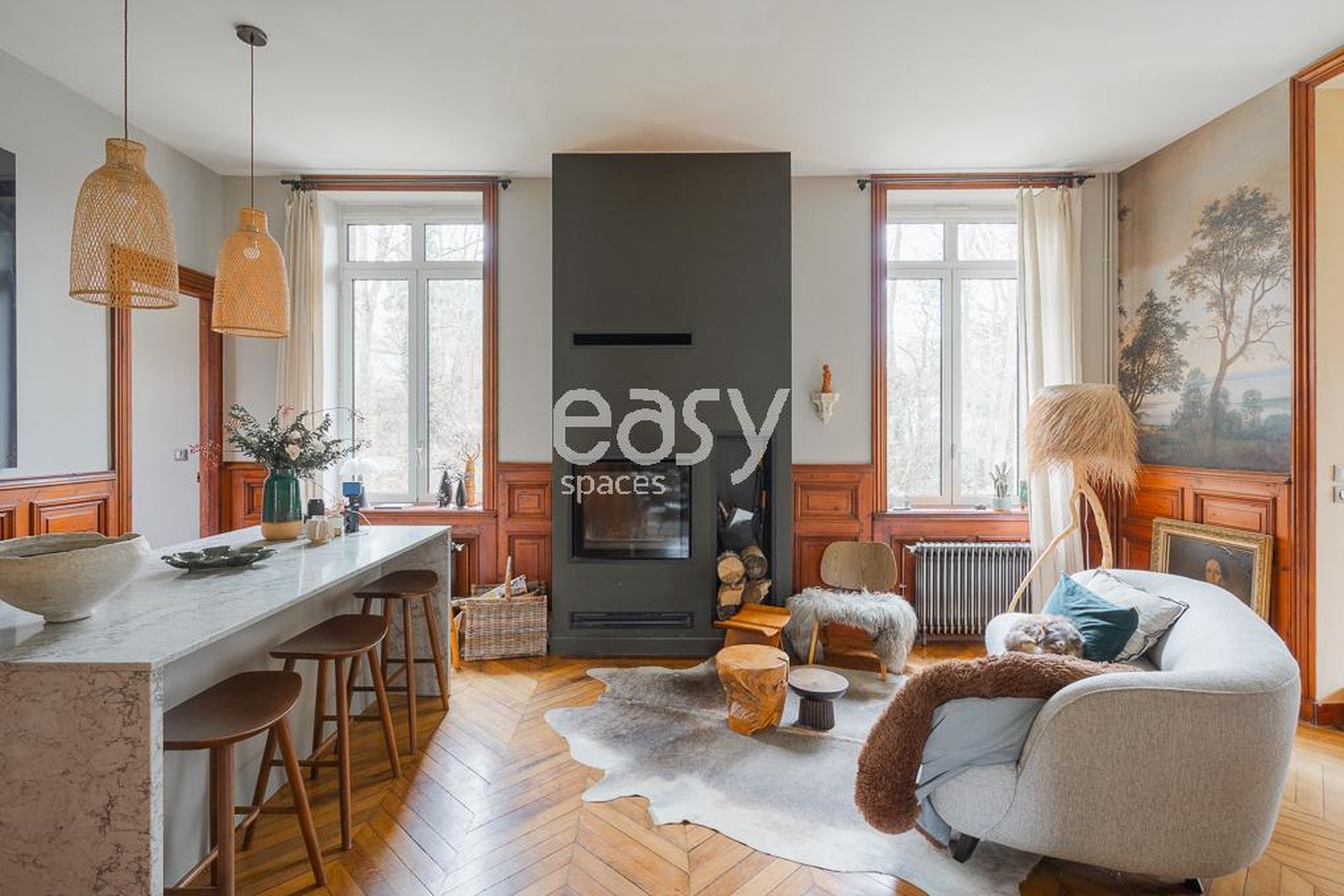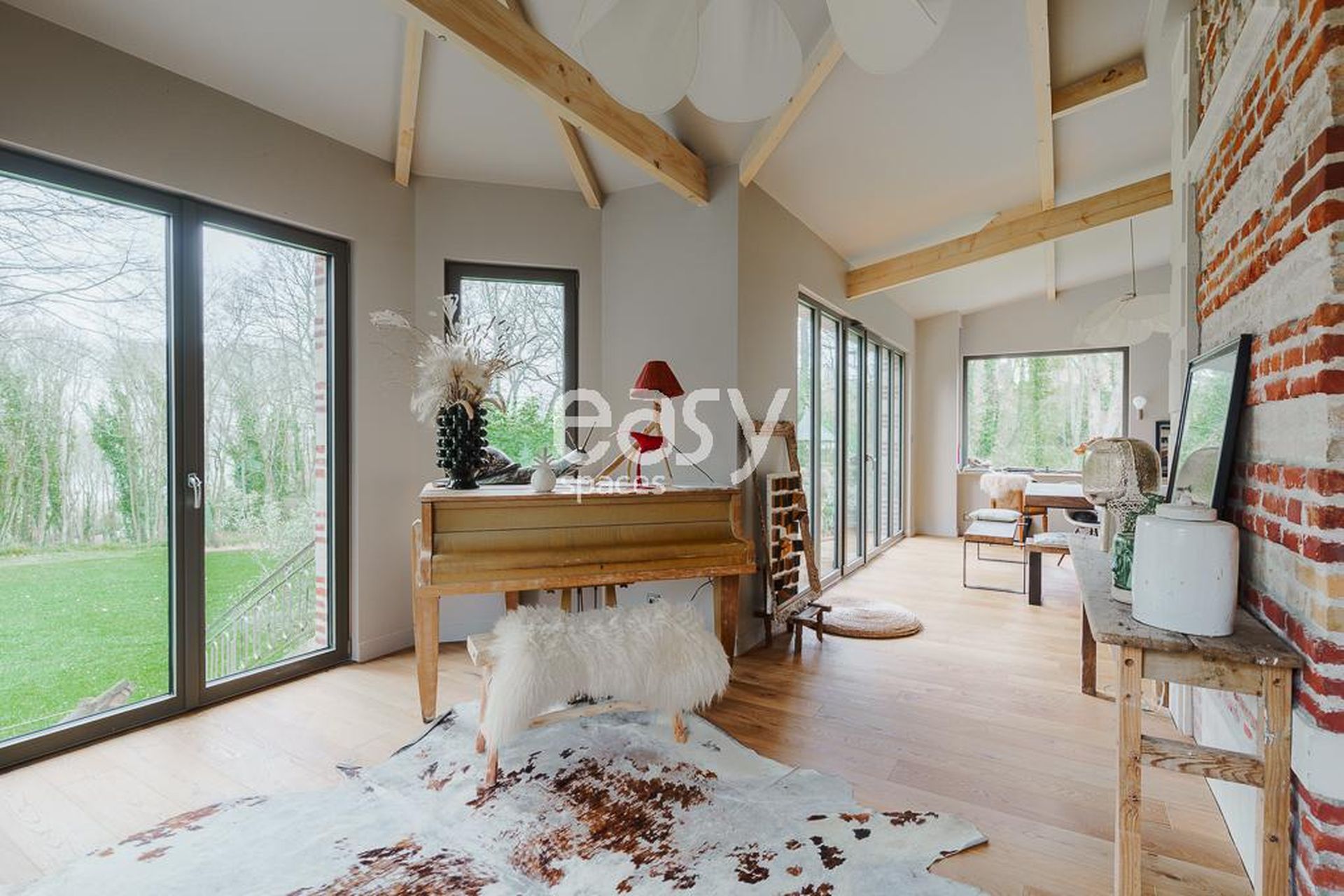 Ce décor possède de beaux volumes, une décoration soignée avec beaucoup de charme et sera idéal pour des prises de vues pour un catalogue de meubles ou de textiles par exemple.