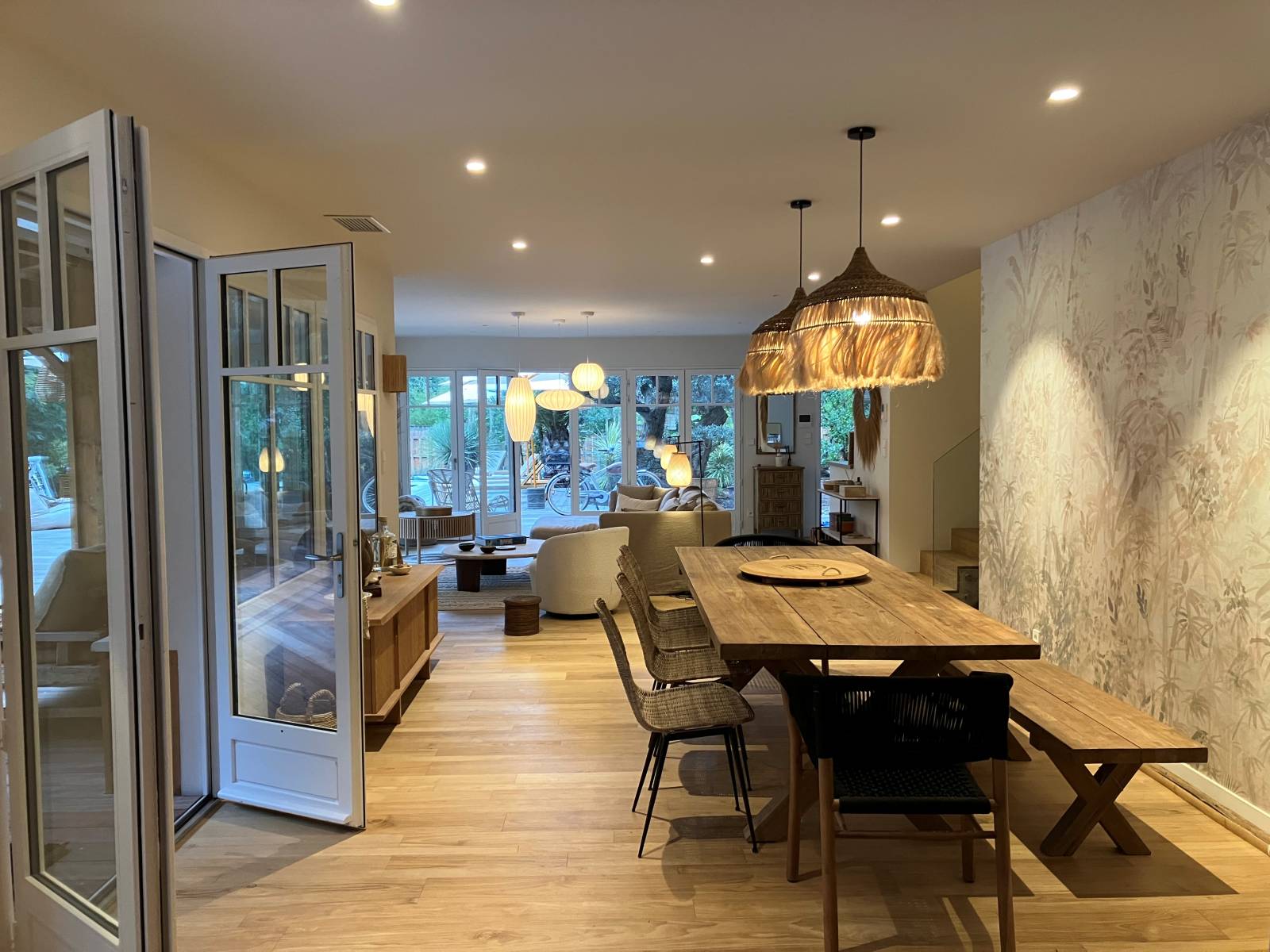 Avec sa terrasse de plain-pied de 350 m², sa piscine chauffée, et son jardin arboré de 1450 m², la maison offre de multiples décors en un seul lieu. Chaque recoin est pensé pour l’image : murs clairs, matières naturelles, jeux d’ombres et de lumière…