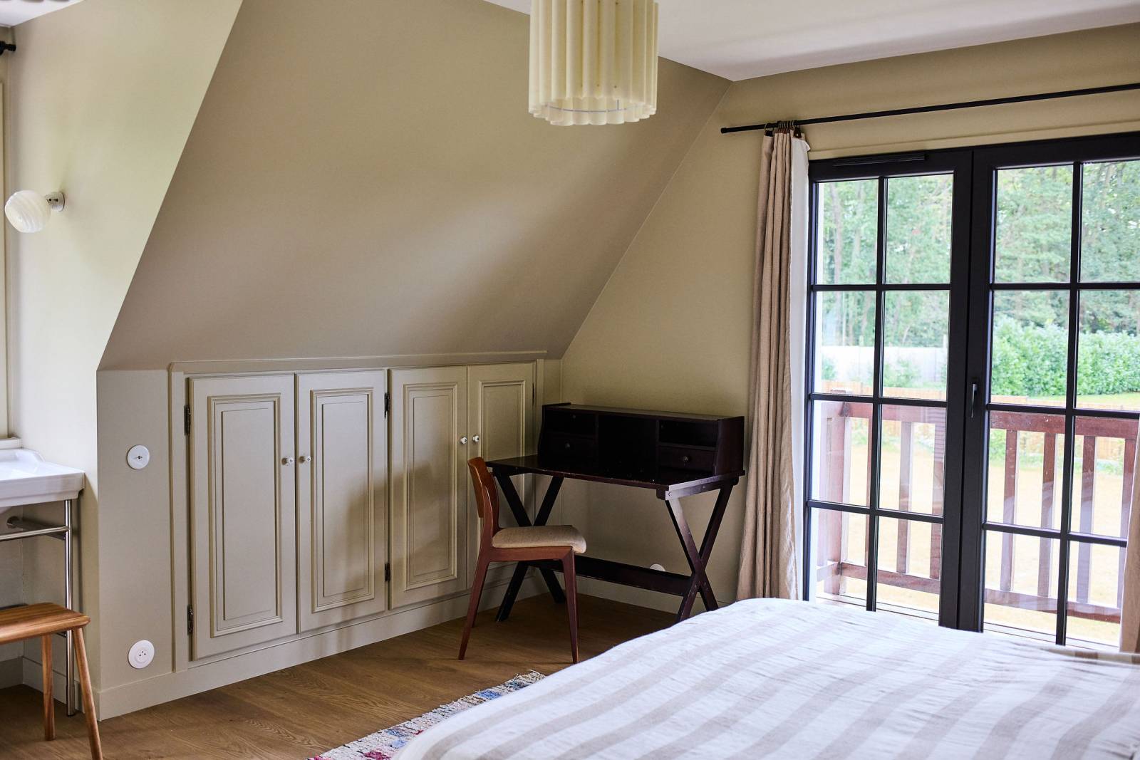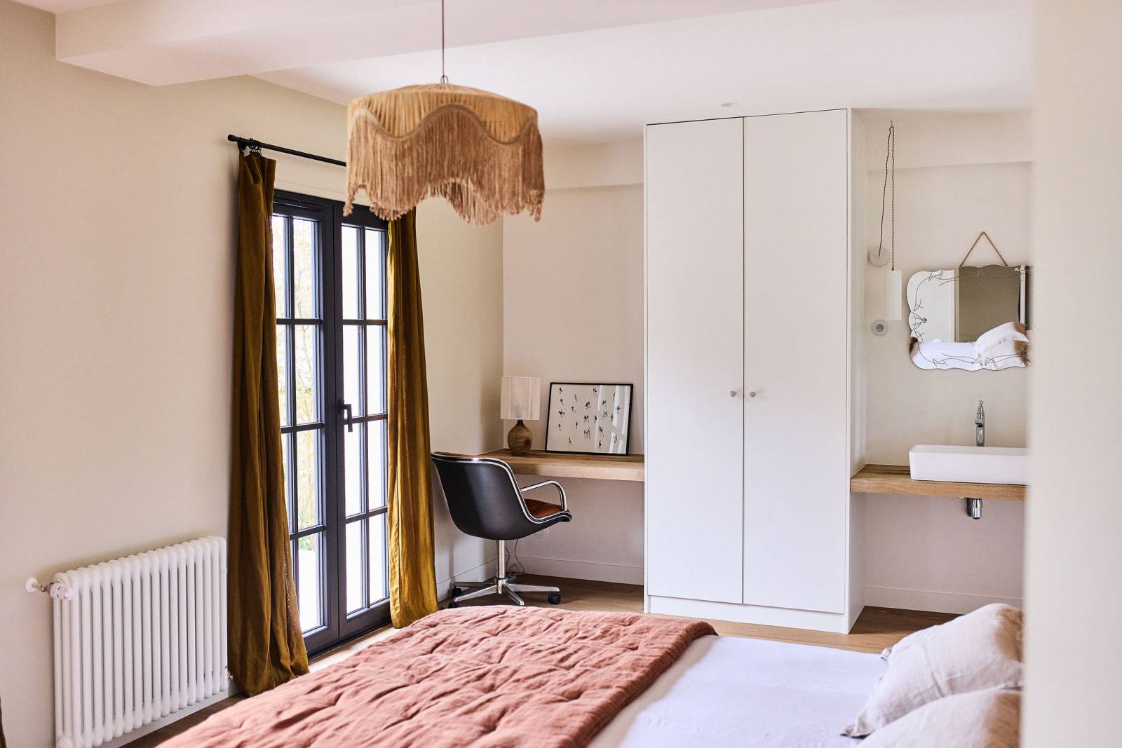 L'intérieur de la maison, soigneusement décoré dans un style cosy, allie modernité et charme d'antan. Les couleurs douces et les matériaux naturels créent une atmosphère apaisante, idéale pour mettre en valeur vos projets.