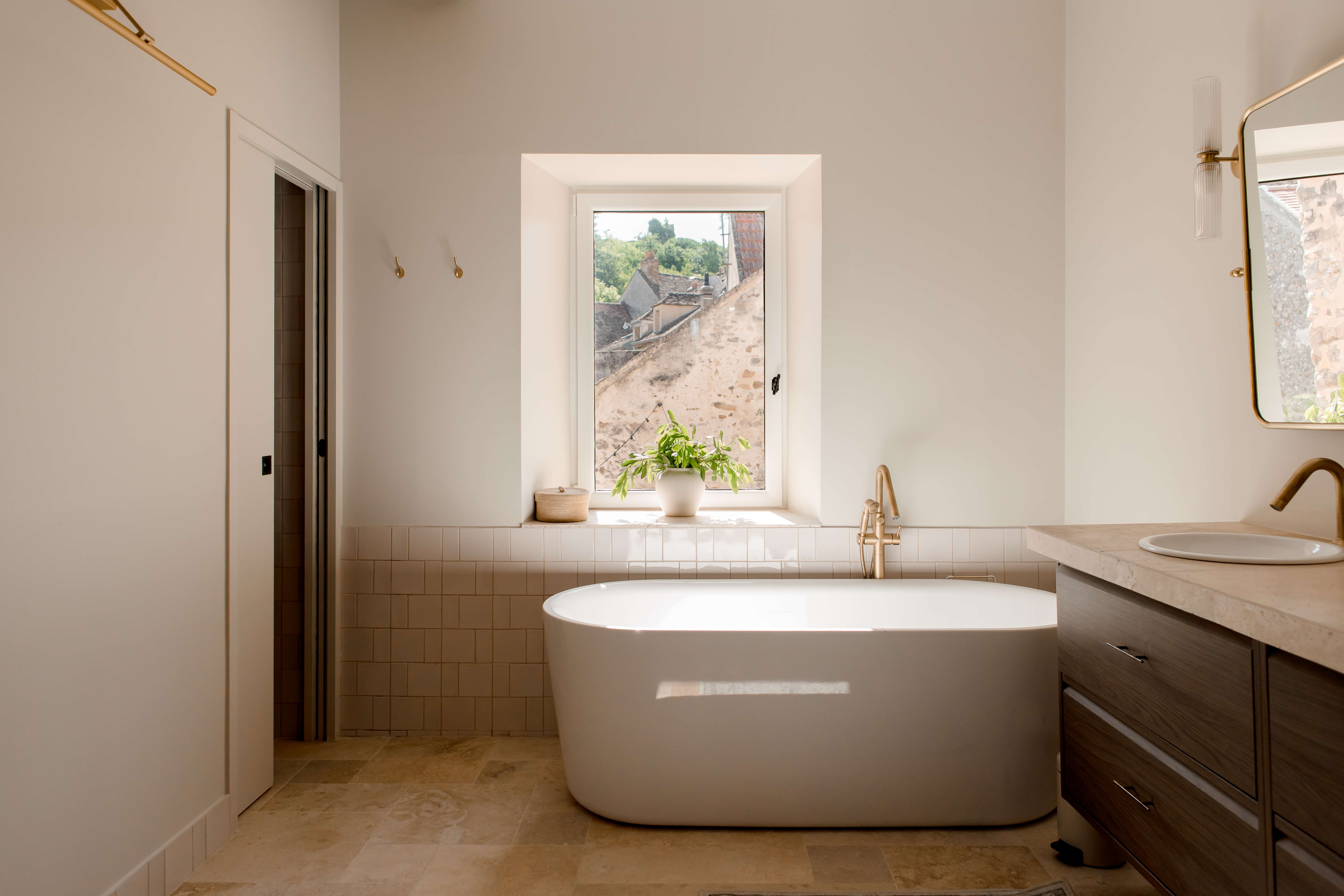 Style : Maison ancienne en pierre, décoration neutre et chaleureuse